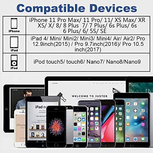 Apple MFi Cerfitied Charger: Our apple charger cable compatible with iPhone 14/13/12/11/Pro/Max/Mini/iPhone XS/iPhone Max/iPhone XR/iPhone X/iPhone 8 Plus/iPhone 8/iPhone 7 Plus/iPhone 7/iPhone 6s Plus/iPhone 6s/iPhone 6 Plus/iPhone 6/iPhone 5s/iPhone 5c/iPhone 5/iPad Pro/iPad Air/Air 2/iPad mini/mini 2/mini 4/iPad 4th gen/iPod Touch 5th gen/ iPod.