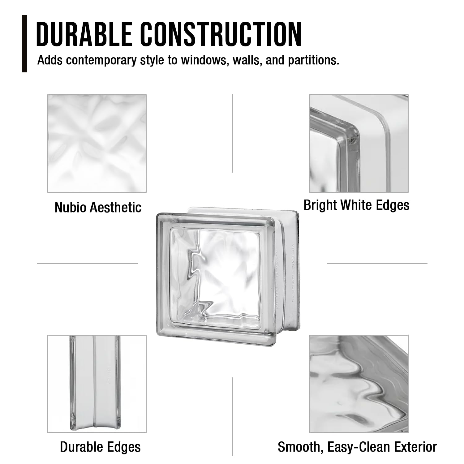 HIGH QUALITY & DURABILITY: Crafted with precision, these 6x6x4 Nubio Glass Blocks are renowned for their high quality and sturdiness. Ideal for home improvement projects, they ensure long-lasting beauty and functionality in any setting.