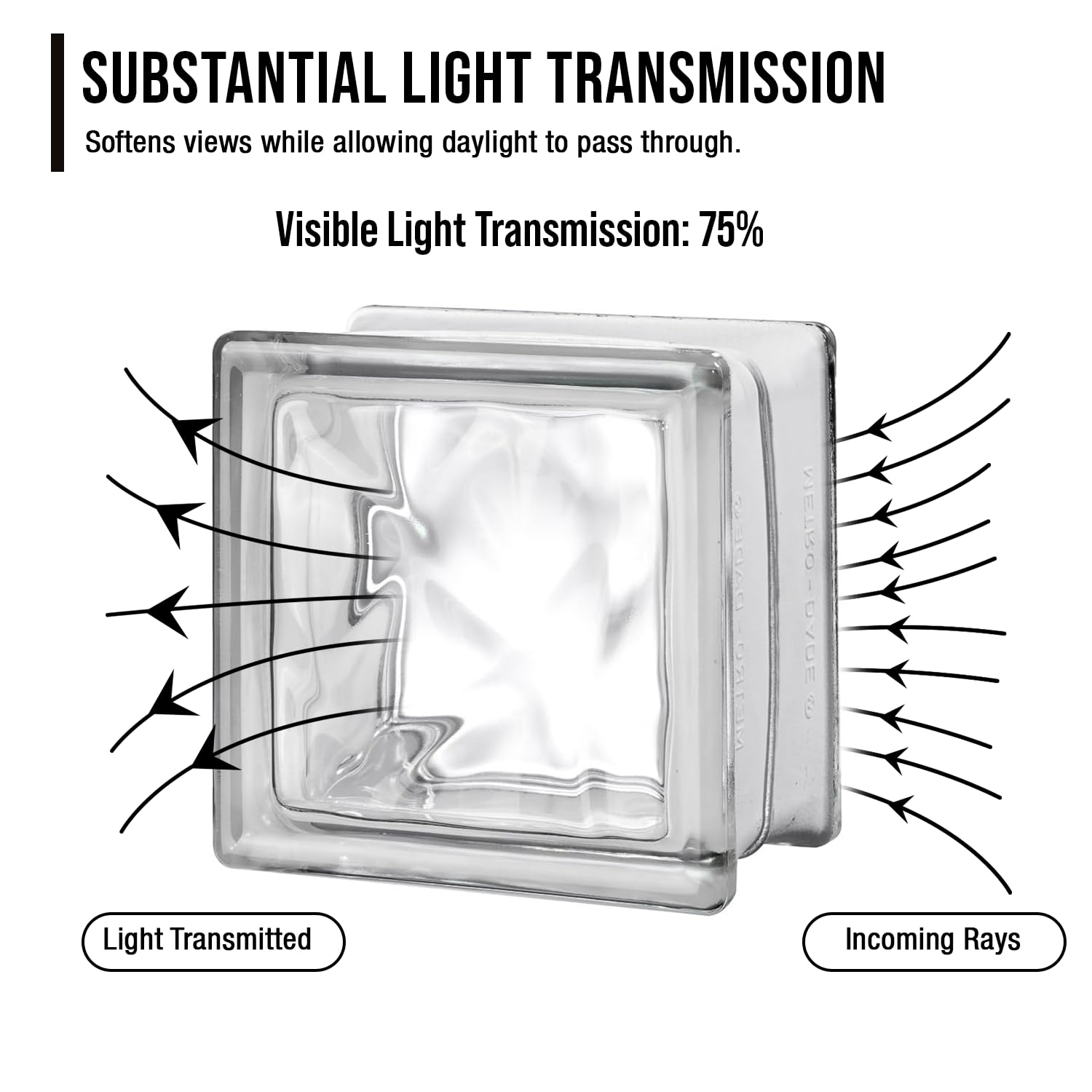 ELEGANT DESIGN: Enhance your home with the Seves Glass Block's elegant wave pattern, offering moderate privacy while allowing natural light to flow through. Ideal for creating stylish spaces with moderate privacy, all while maintaining a bright, open feel.