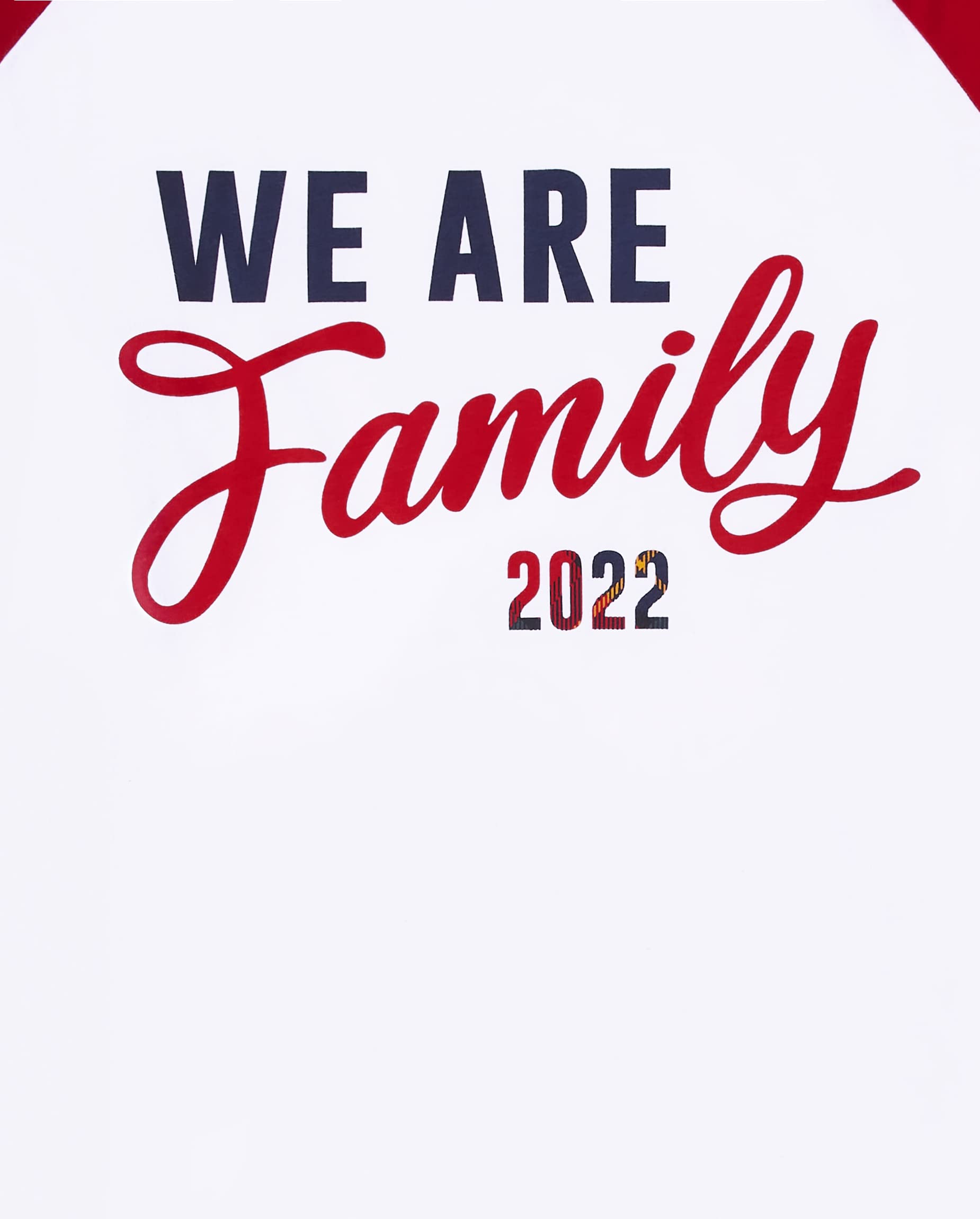 PAJAMA TOP — Features long raglan sleeves, rib-knit crew neck and sleeve cuffs and 'We Are Family 2022' graphic design at front