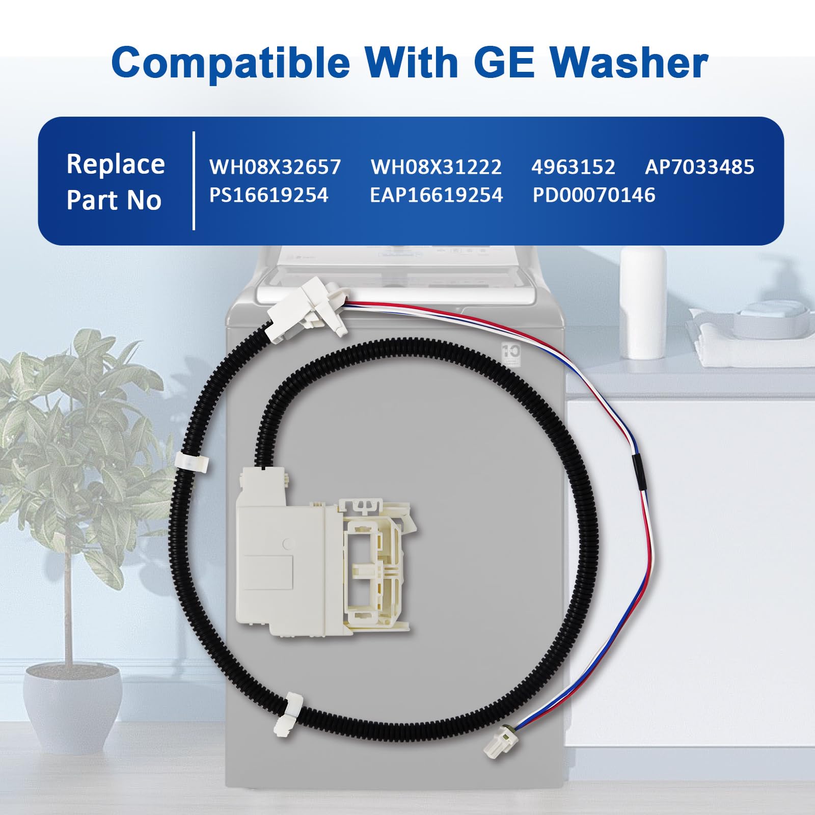Package includes: 1 pc WH08X32657 WH08X31222 WH08X37937 Washer lid lock and harness for GE. Compatible with model GTW220ACK7WW GTW335ASN2WW GTW465ASN2WW GTW465ASN3WW GTW465ASN9WW HTW240ASK6WS GTW720BSN1WS