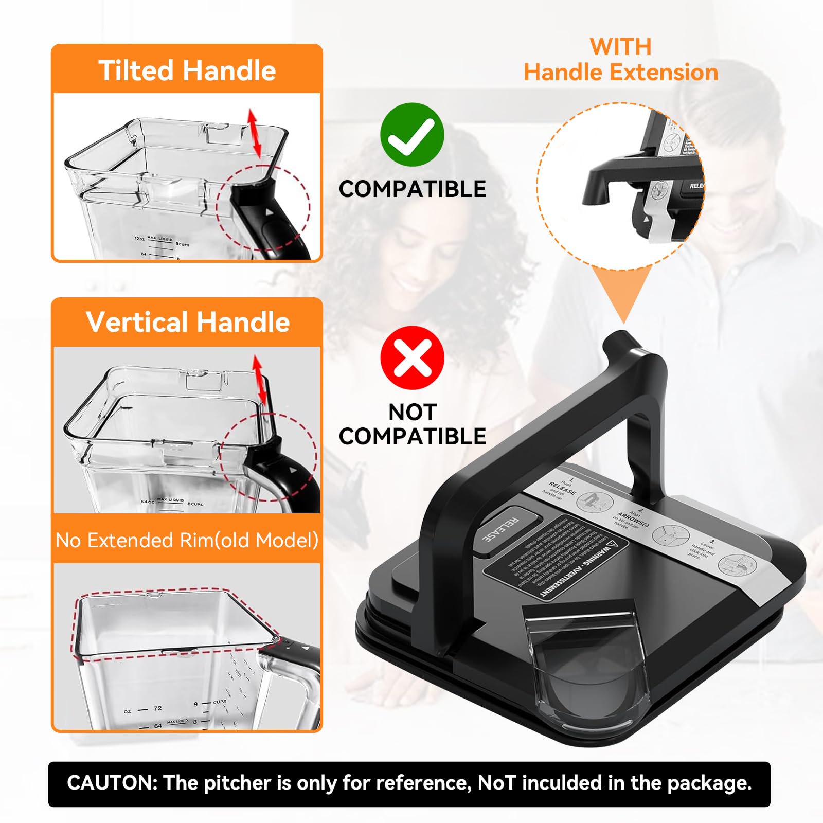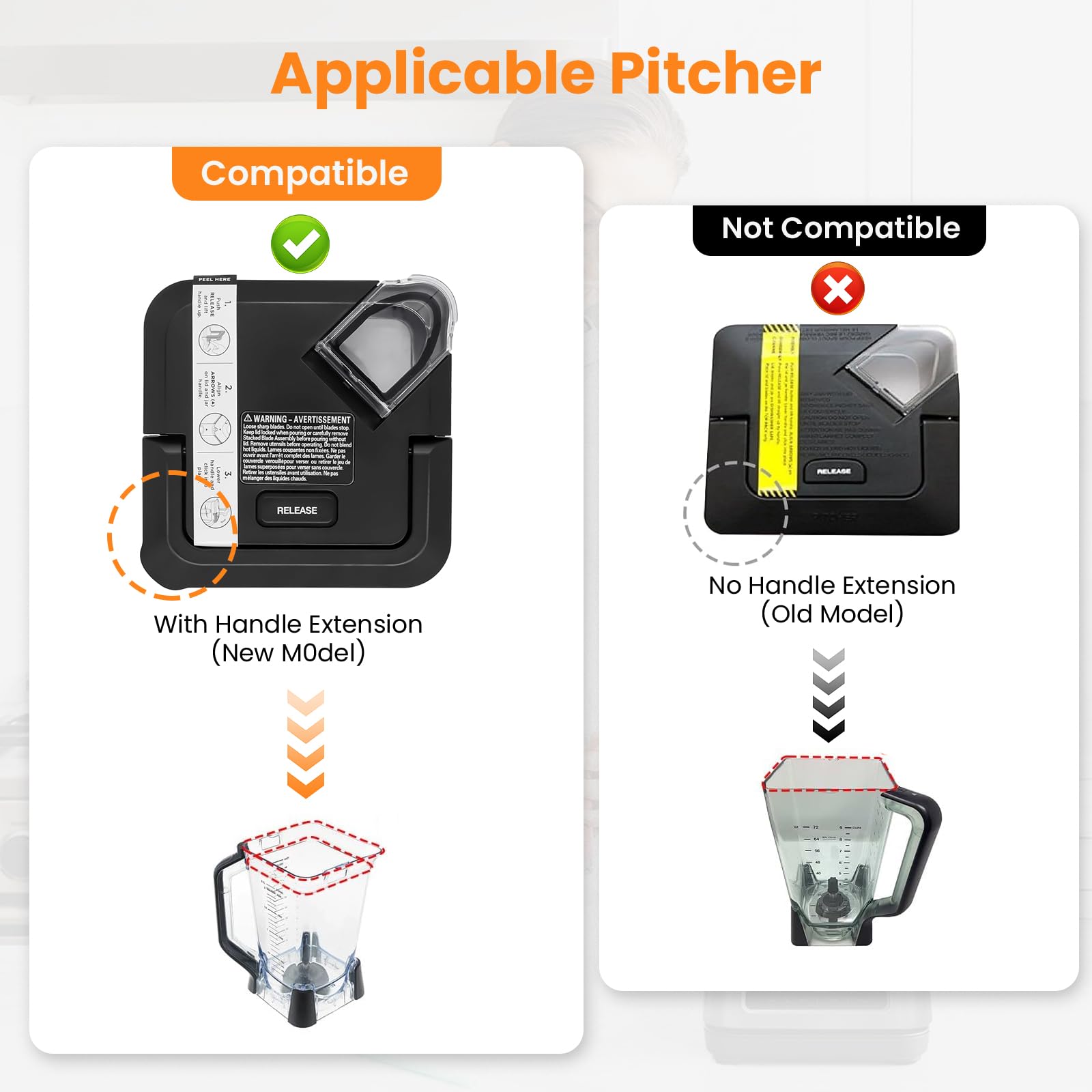 【ATTENTION】You can refer to image NO.2 carefully for details to check yours before buying,Our replacement top lid for ninja blender is the NEWER model with a HADLE EXTENSION