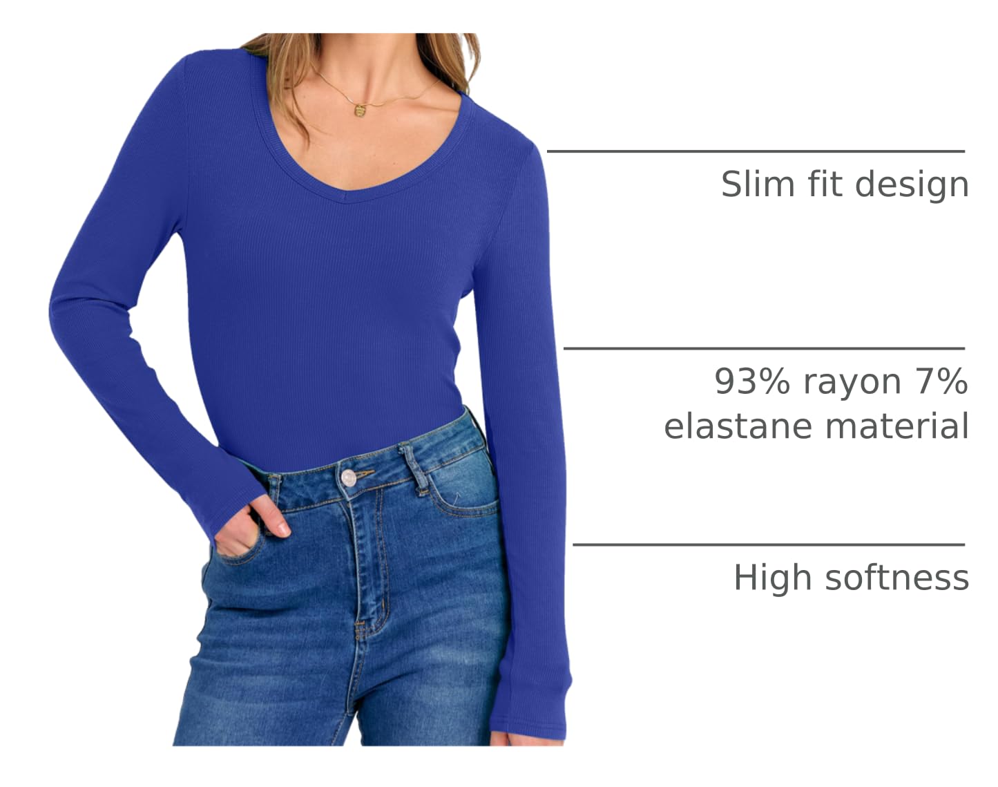 Features - Women's fall Y2k basic v neck knit tops, ribbed knit, long sleeves, and slim fit design.This women's shirts is perfect for daily wear, home, work, street wear, vacation, shopping, cafes and other casual occasions.