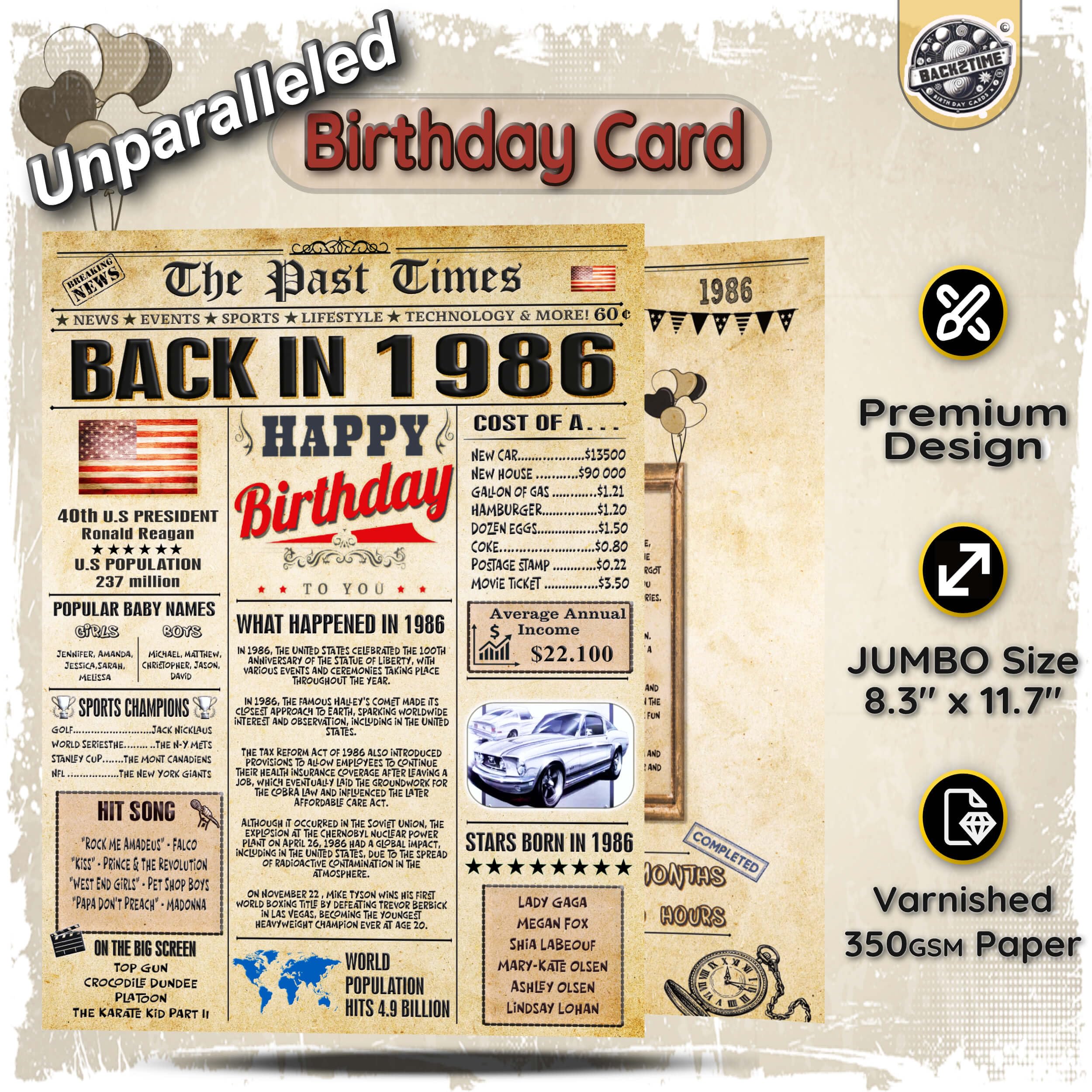 π FUNNY BIRTHDAY CARD + EXCLUSIVE ENVELOPE π Enjoy a beautifully printed Back in card that's entertaining to read, featuring a special bonus on the back with intriguing stories or lesser-known facts from that year. The interior offers space for personalized messages, designed with an aged appearance and elegant decorations to enhance the vintage feel. The included envelope boasts a unique design ideal for mom and adult born in 1986. Birthday Cards for Women, Birthday Cards for Men.
