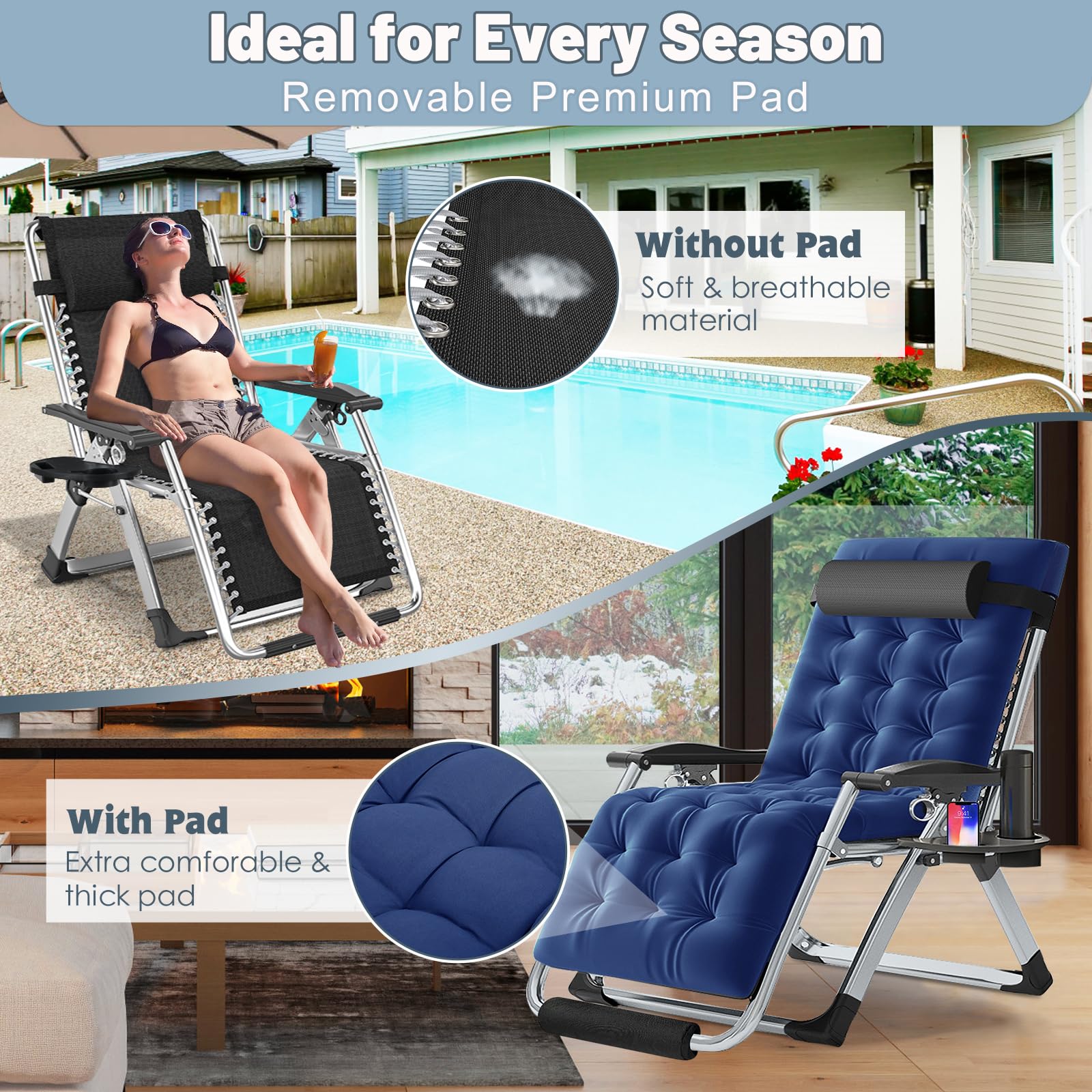 Removable Soft Pad: Intuitive design features that this outdoor zero gravity chair can be used by anybody. You can remove the soft cushion from the folding lounge chair to promote better airflow during hot summer days. Plus,the chaise lounge chair is very easy to install and can be easily folded, for easier storage and handling