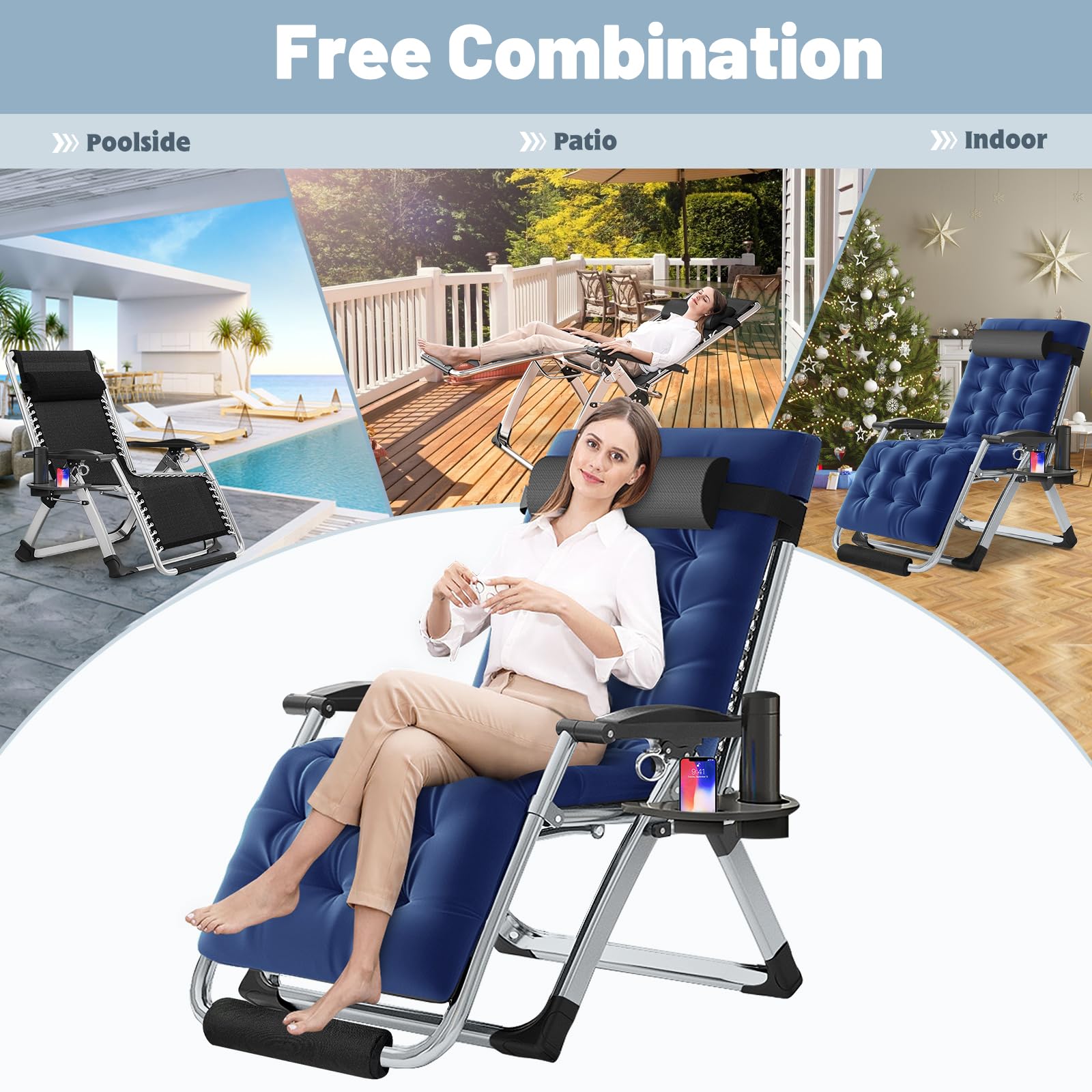 Comfortable Design: The outdoor zero gravity lounge chair is designed to satisfy your ultimate comfort. The armrest of folding lounge chair is thick and contoured. It will serve you whether sitting or lying, outdoor and indoor. Our recliner chair comes with a thick and soft pad