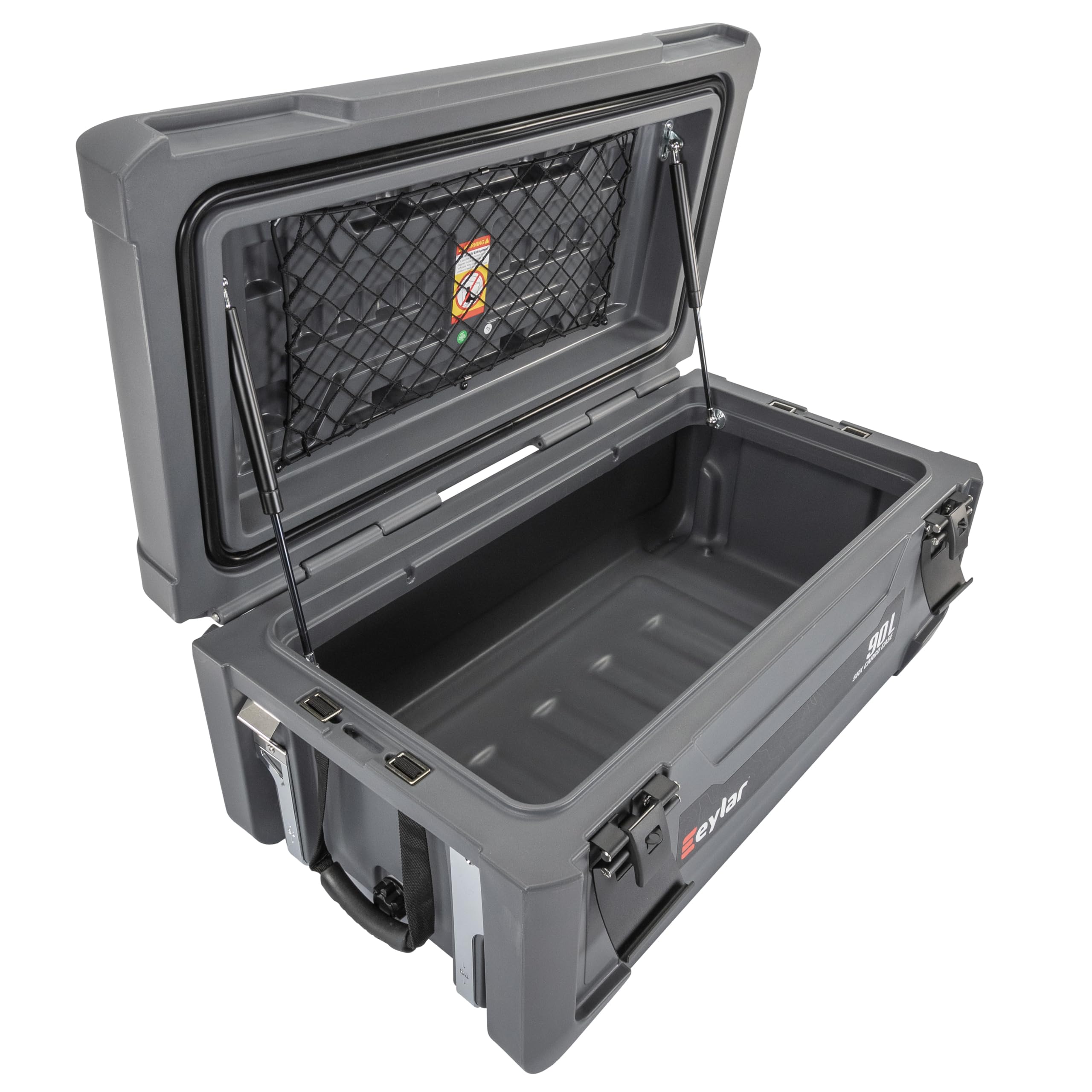 The Eylar SRX-90 Offroad Transport Cargo Case is the ultimate storage solution for outdoor enthusiasts, overlanders, and adventurers who demand rugged durability and versatile functionality. With a 90-liter capacity, this heavy-duty case is built to protect your gear in the toughest environments, whether you’re navigating rocky trails, camping deep in the wilderness, or hauling essentials on a long road trip. Its reinforced construction and lockable latches ensure that your equipment stays secure, while the rubber gasket lining provides exceptional waterproof protection, keeping your contents dry in any weather conditions. The gas strut lid makes opening the case effortless, holding it open for easy access to your gear. Designed for multi-purpose storage, the SRX-90 is not just for tools and camping gear—it’s also an excellent food and dry goods storage solution. The included internal tray and divider help keep items organized, whether you’re packing cookware, non-perishable foods, or even fresh ingredients for a weekend in the wild. The built-in drain system makes it easy to clean, making it perfect for use as a makeshift cooler when packed with ice. Plus, dual bottle openers add a touch of convenience for relaxing around the campfire. For those who prioritize safety and visibility, the SRX-90 comes with optional reflective stickers, making it easy to locate your cargo case in low-light conditions. The stackable design allows for efficient storage in your vehicle, on a roof rack, or in your garage, maximizing space without the risk of cases sliding off. Whether you’re heading off the grid, tailgating with friends, or simply looking for a reliable, all-weather transport case, the Eylar SRX-90 Offroad Transport Cargo Case is built to handle it all.