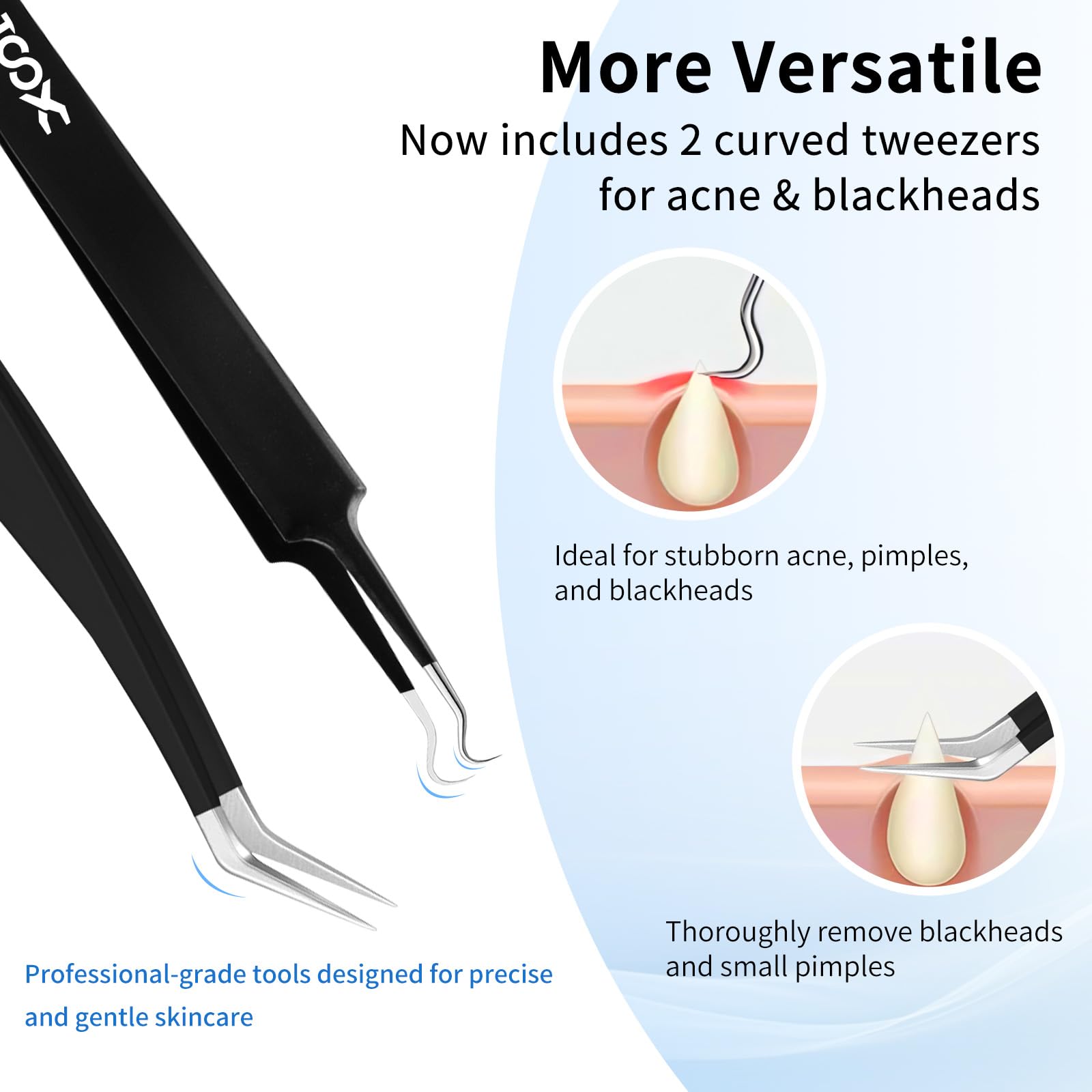 【Multi-function】 XOOL Precision Tweezers Set applies to repair precision devices, circuit boards, digital products, pick small items and so on. Excellent for electronics, jewelry and other fine crafts, medical and laboratory work and much more. NOTE: Please understand as for ingrown hair removal, cosmetic hair removal, eyebrow grooming, blackhead, whitehead & acne removal, it can't be used as a professional tool.