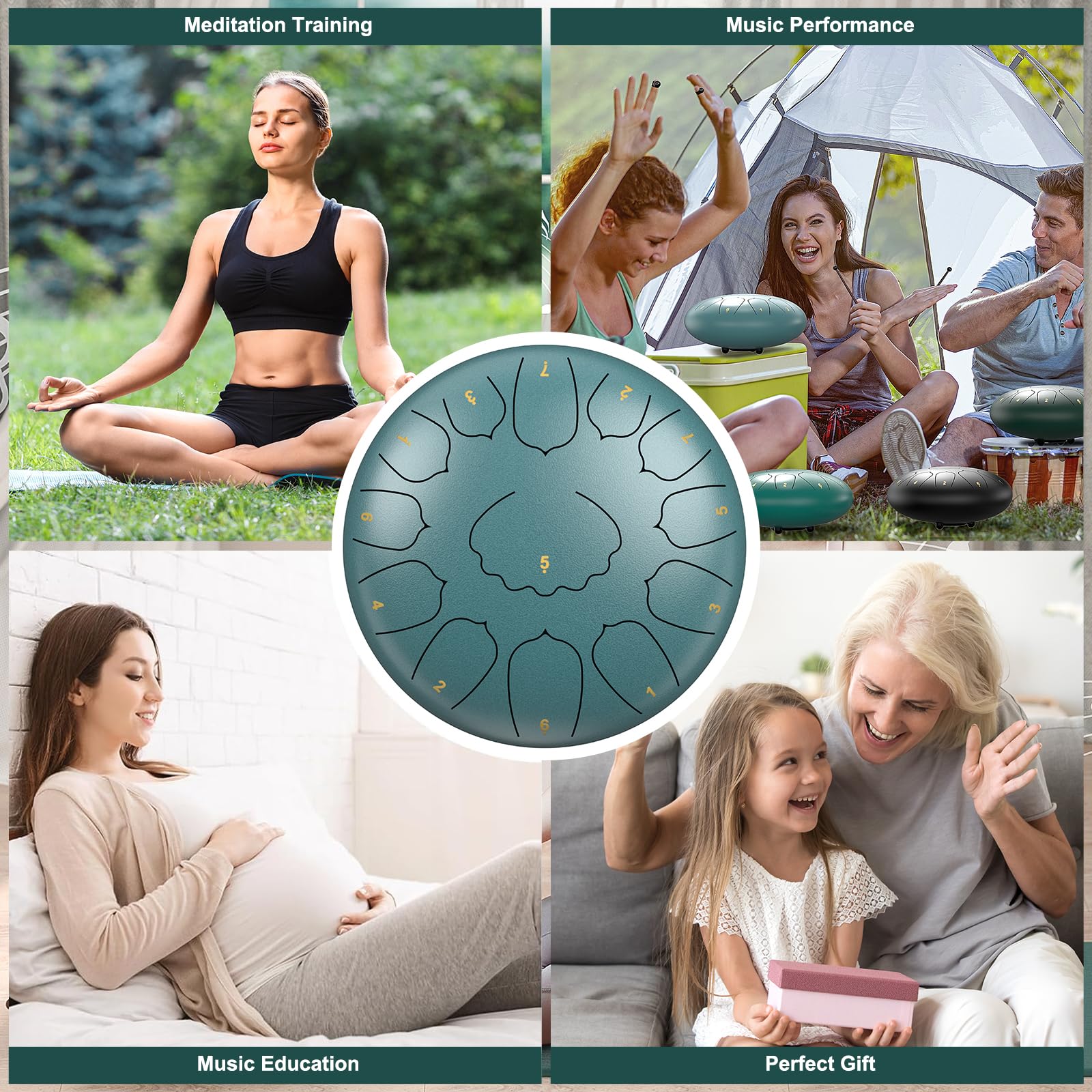 Unique Gift For Family Or Friends: Include 1*large steel drum, 1*drum bag, 2*drum mallets, 1*mallets stand, 1*music book—everything needed to start a musical journey. The calming effects of the rain drum's sound bring clarity and peace of mind, making it an ideal gift for kids, women, or men for Christmas, birthdays, get-well wishes, or white elephant exchanges.