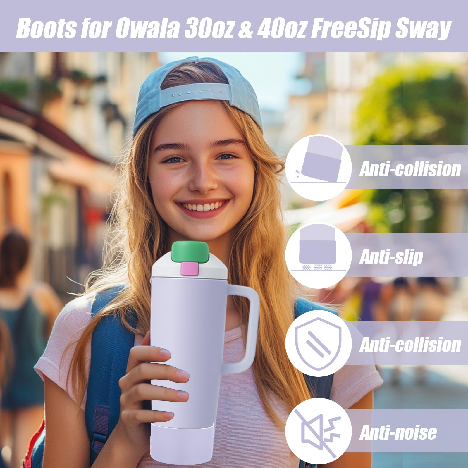 Custom Fit for Owala 30oz & 40oz Bottles: This silicone boot is tailored to fit for owala free sip sway 30oz and 40oz tumbler bottles perfectly, enhancing stability and protection while preserving the bottle’s sleek, original design