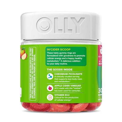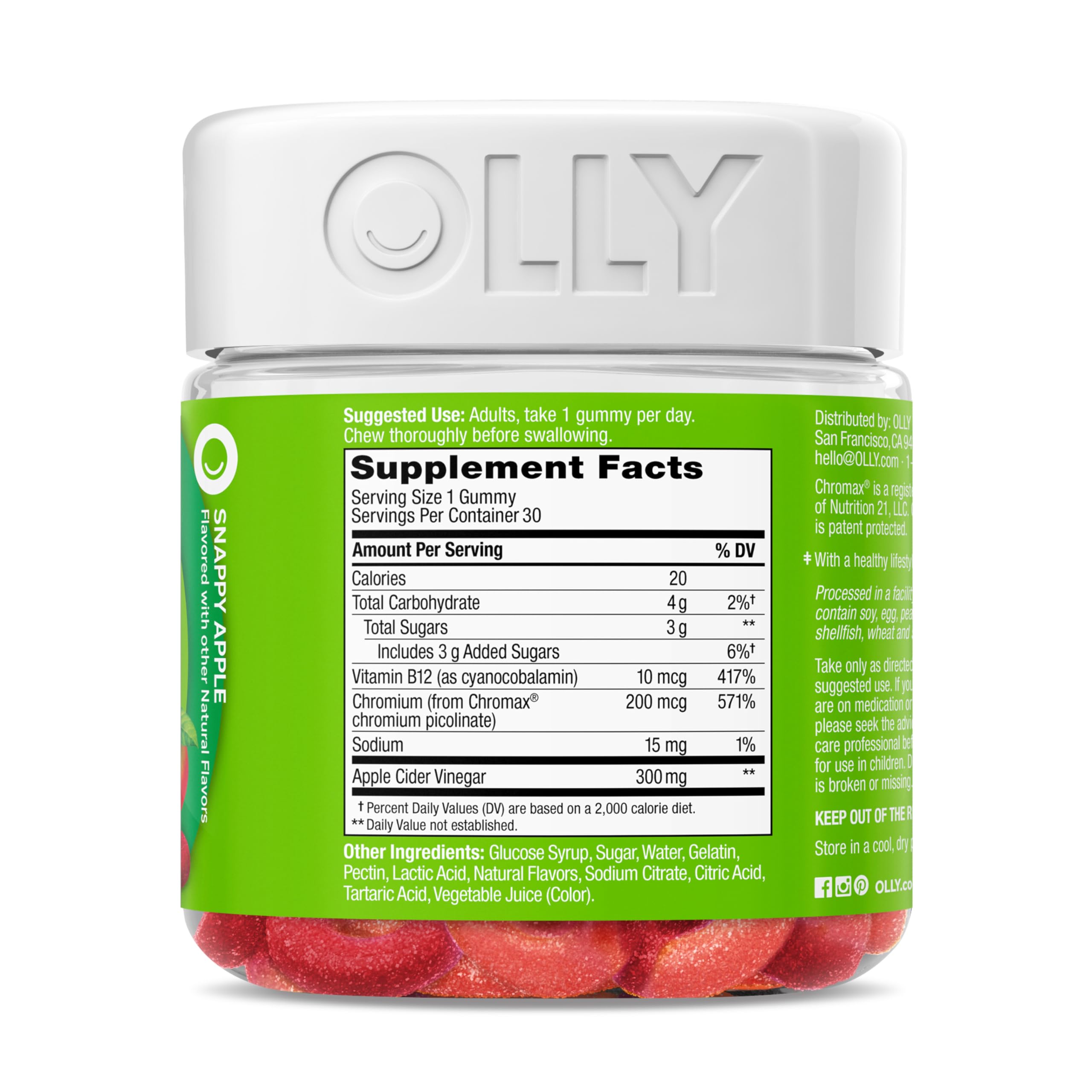 OLLY Metabolism Gummy Rings, Apple Cider Vinegar, Vitamin B12, Chromium, Energy and Digestive Health, Chewable Supplement, Apple Flavor - 30 Count