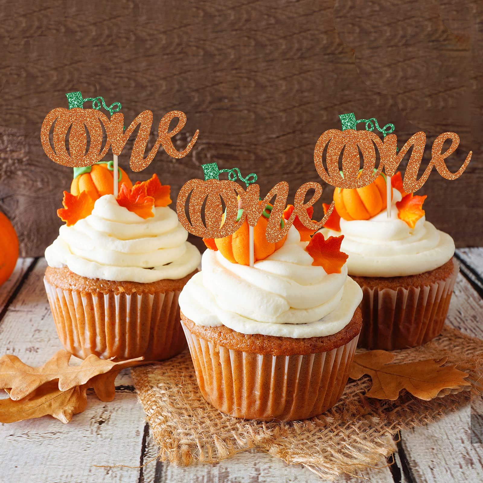 No Assembly Required: 24Pcs orange glitter pumpkin one cupcake toppers. our pumpkin one cupcake toppers have already assembled, save your time with using the fully assembled toppers. easy to use.perfect for fall 1st birthday cake decorations.