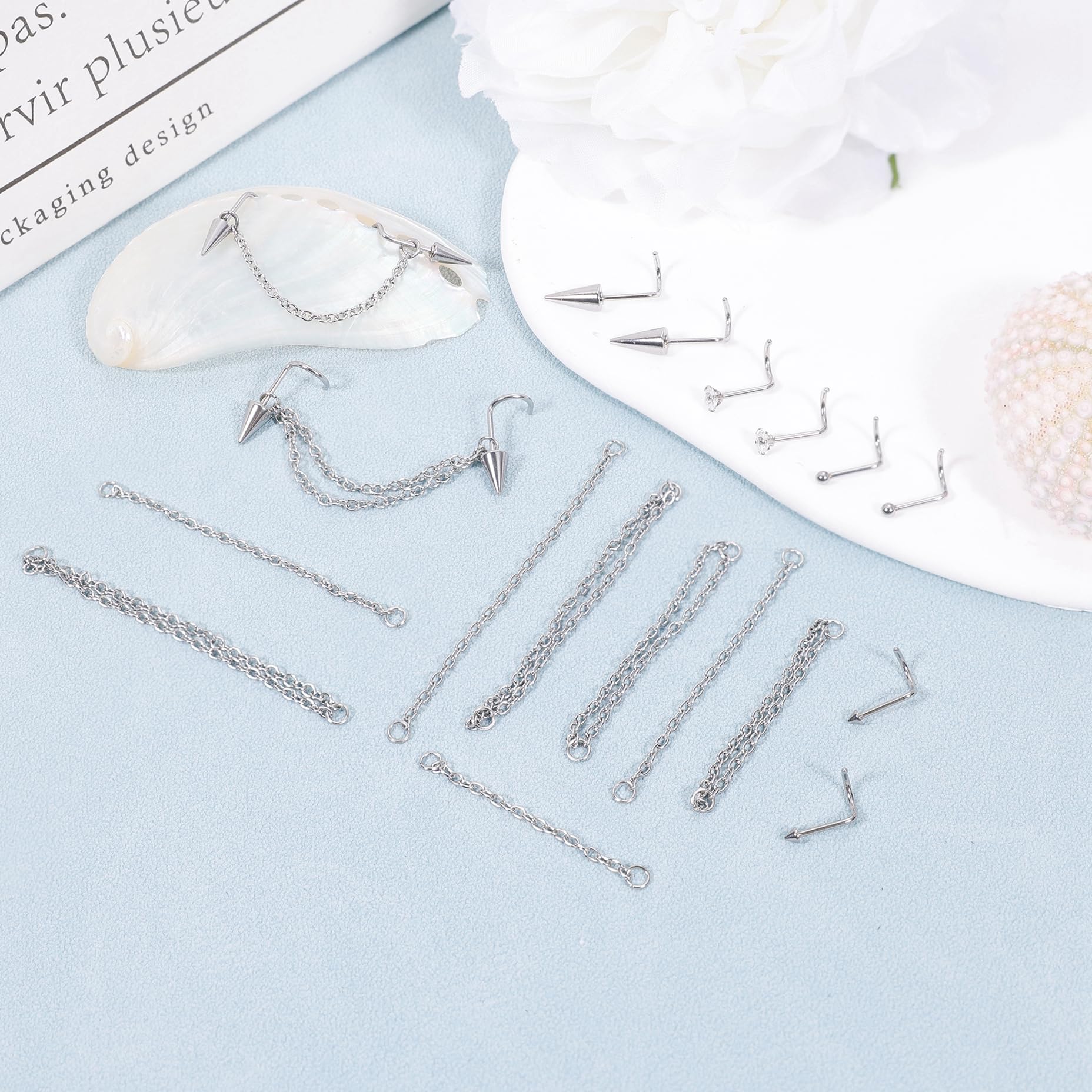 RELIABLE MATERIAL:Crafted from 316L stainless steel, our nose stud chain is not only fashionable but also hypoallergenic and safe to wear. It's a comfortable choice for those with sensitive skin. Rust-proof and corrosion-resistant, ensuring long-term use