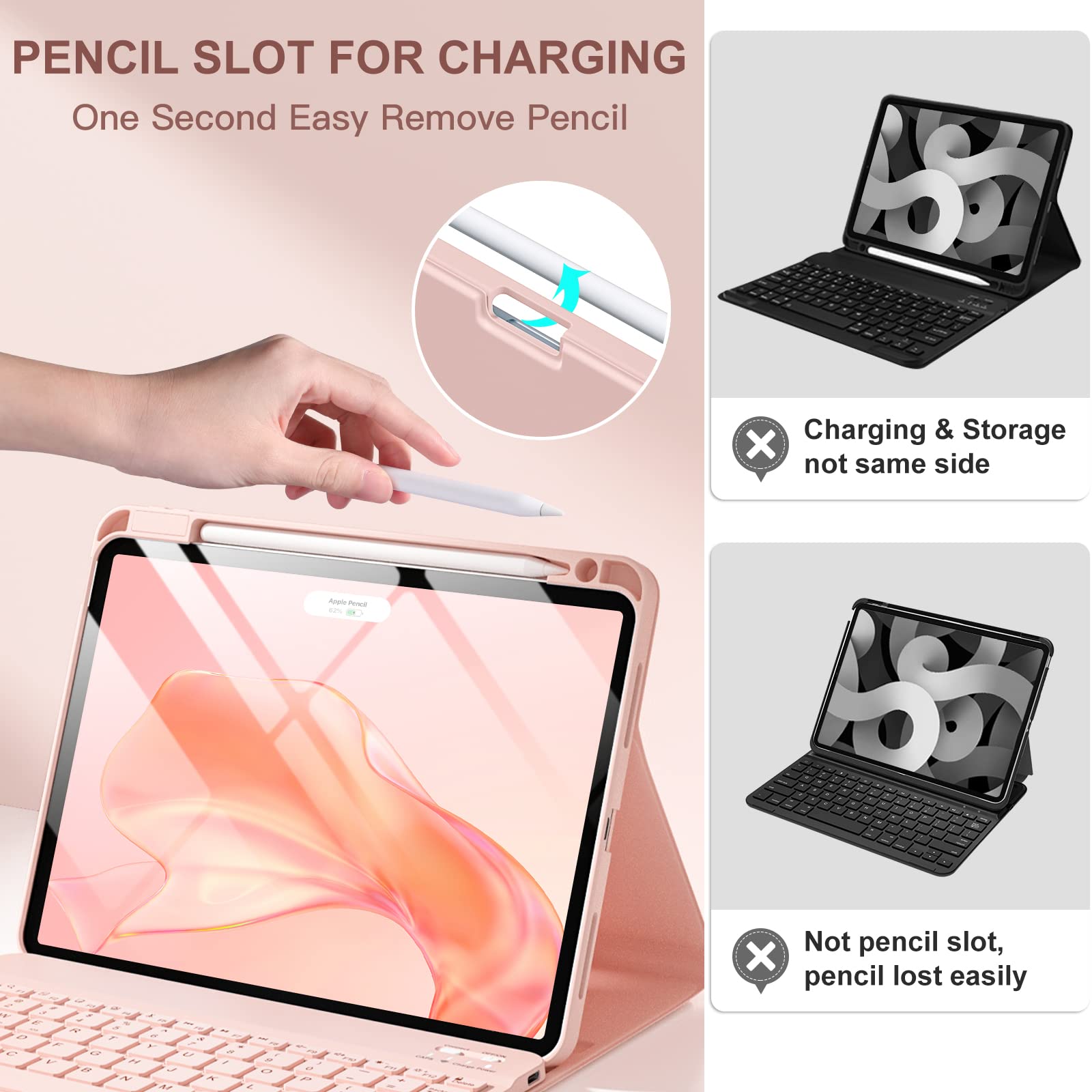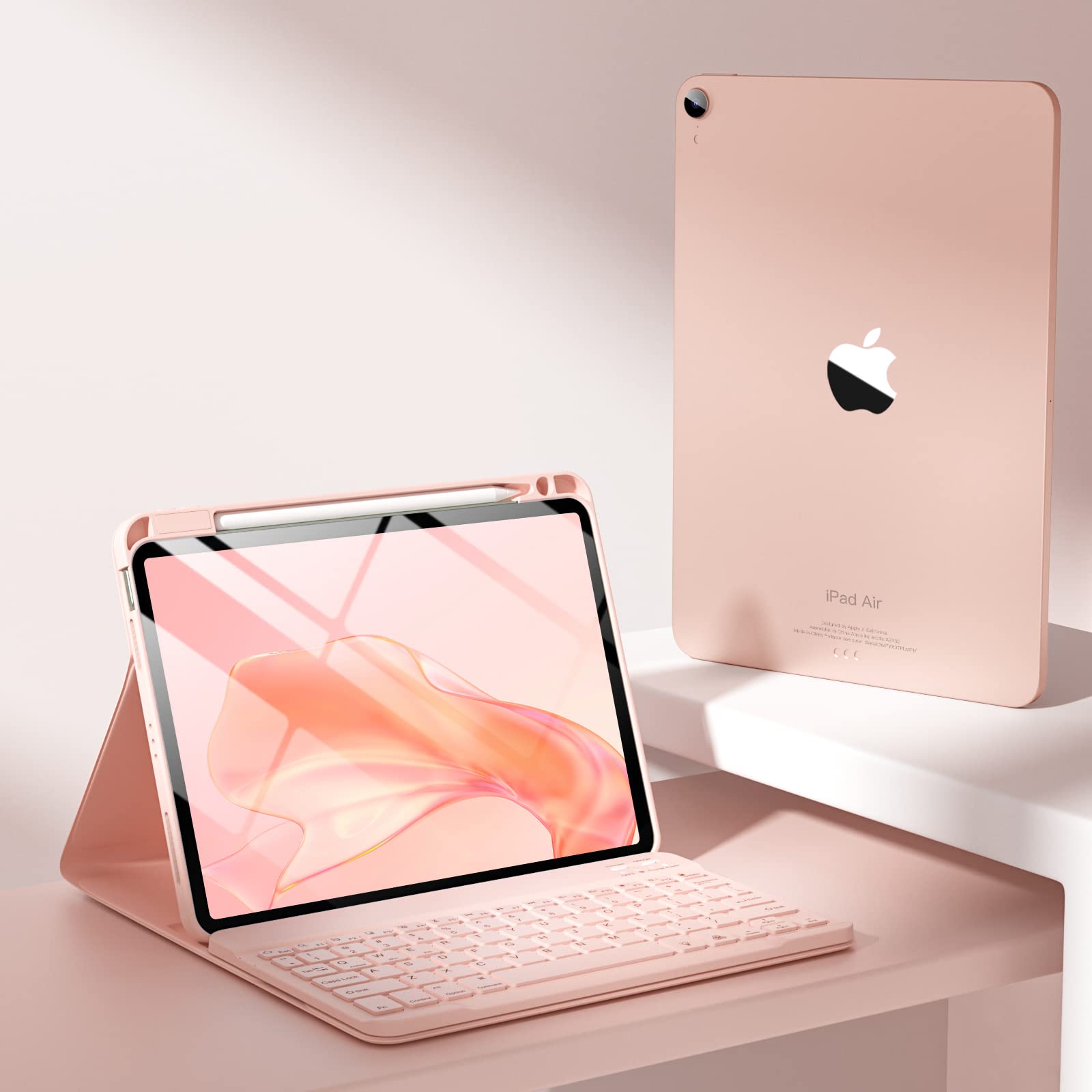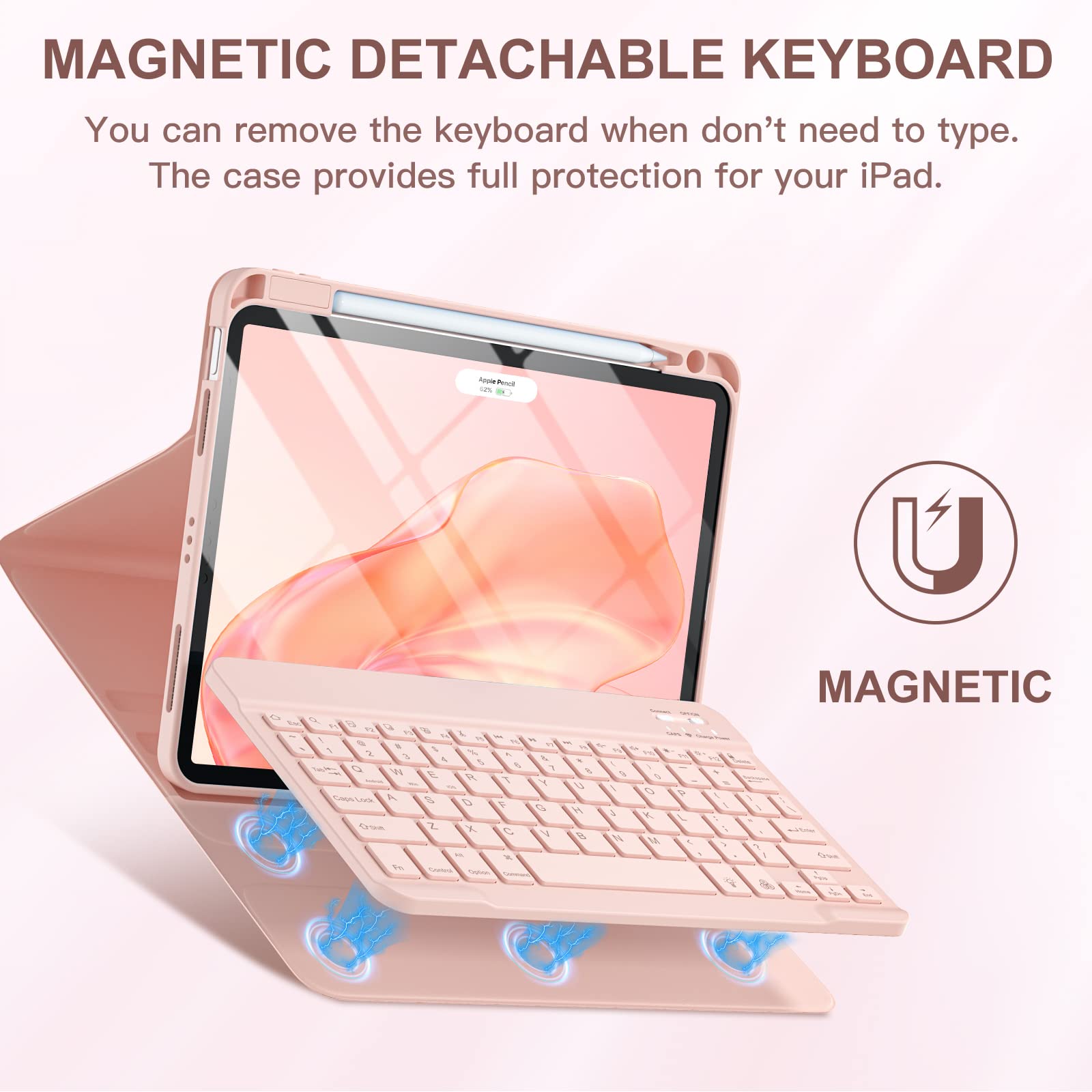 ❤【Detachable Backlit Keyboard】The keyboard for iPad air 5/4 generation can be attached to the case with pretty strong magnets or detach completely. It is easy, fast and stable to connect via BT, reconnect immediately when turning it on. Using the optional backlight mode one color at a time or 7 colors breathing backlight, Picture yourself typing smoothly in the dark even at night for work