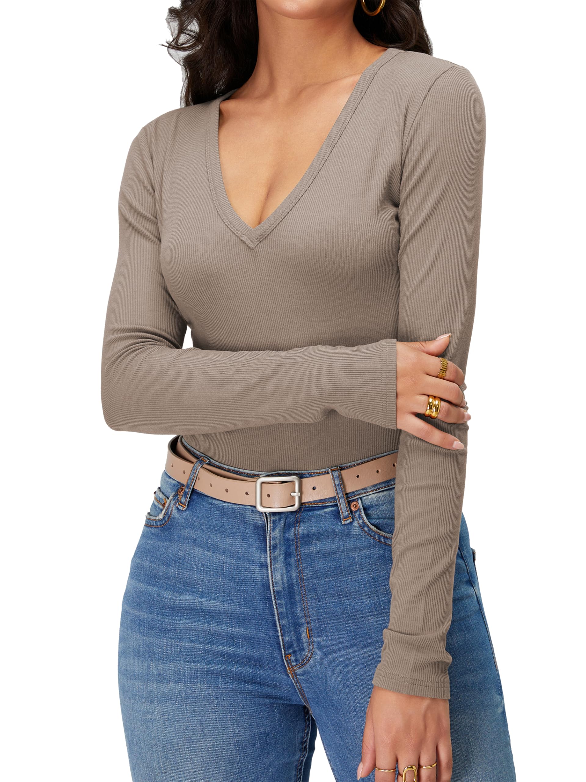 Features: Long sleeve, V-Neck, Solid color, Slim fit, Ribbed knit, Simple and Basic Tops for daily. It's Comfy Against the Skin, Nice for Laying or Inter Hoodies/Shackets.