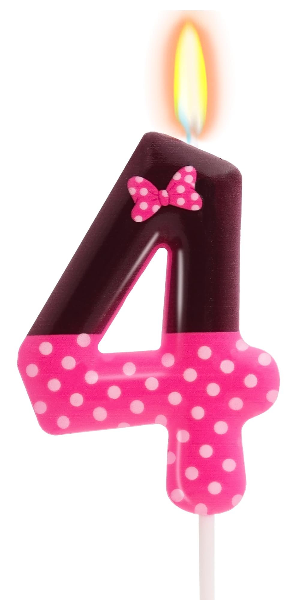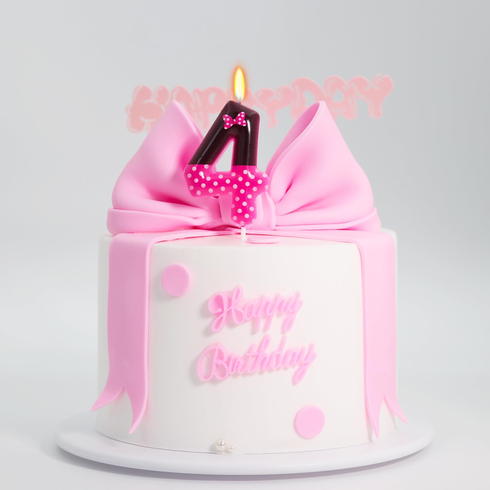 BEAUTIFUL DESIGN: With a pink and black colour clash design, this birthday candle looks playful and cute with a cute bow and white polka dots printed on the candle