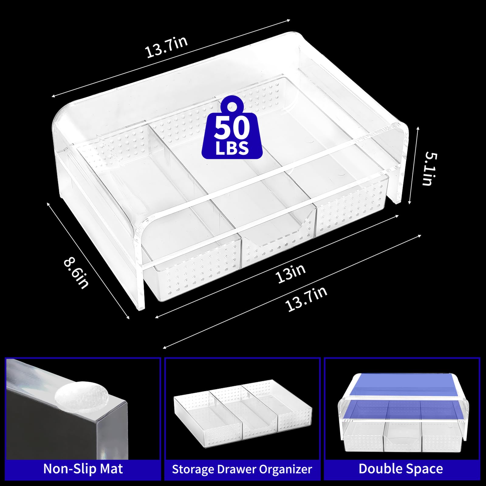 【Save Space】:This 2-Tier monitor stand with drawer provides ample storage space to keep your office supplies and office desk accessories neatly organized and easily accessible, keeping your workspace tidy and improving your sense of well-being