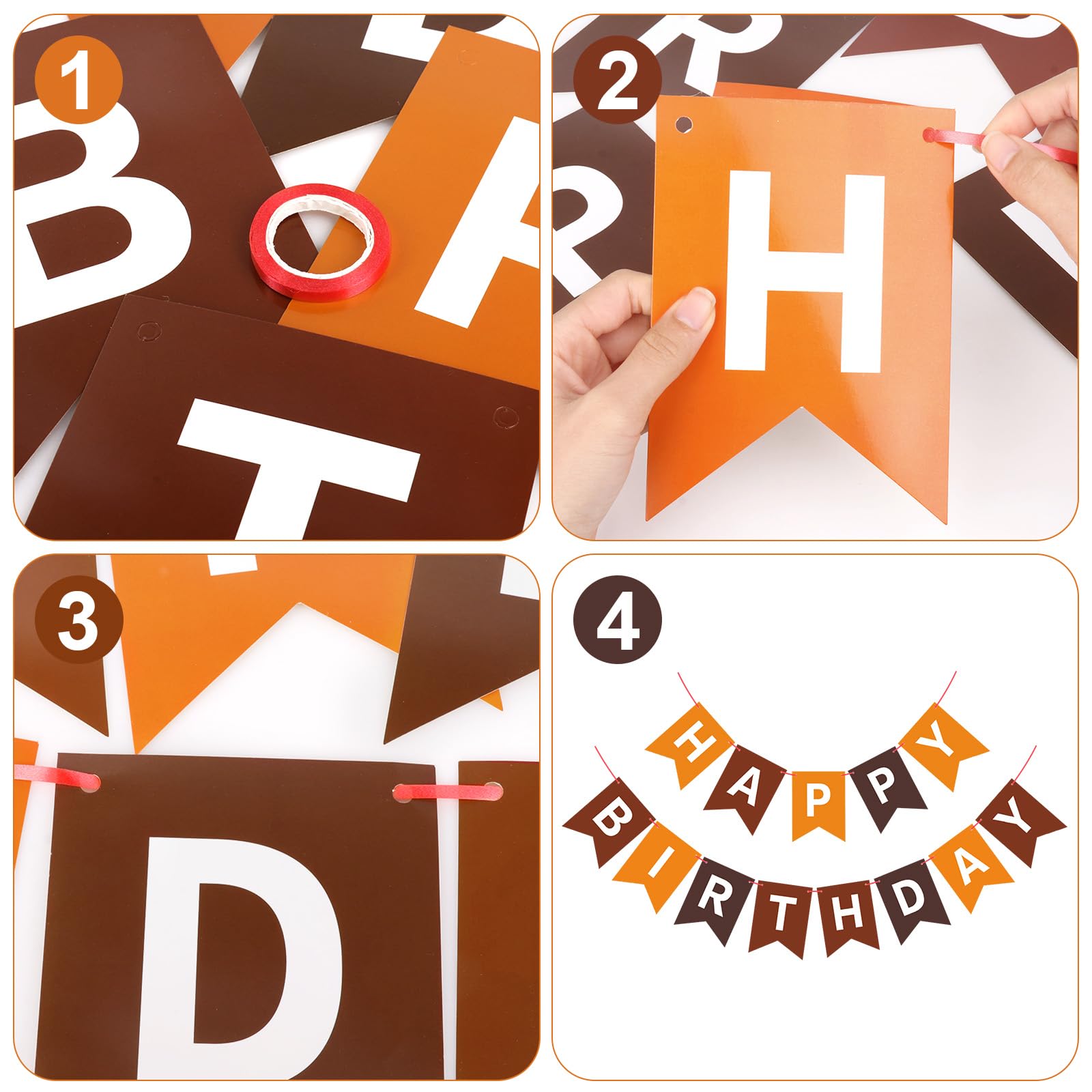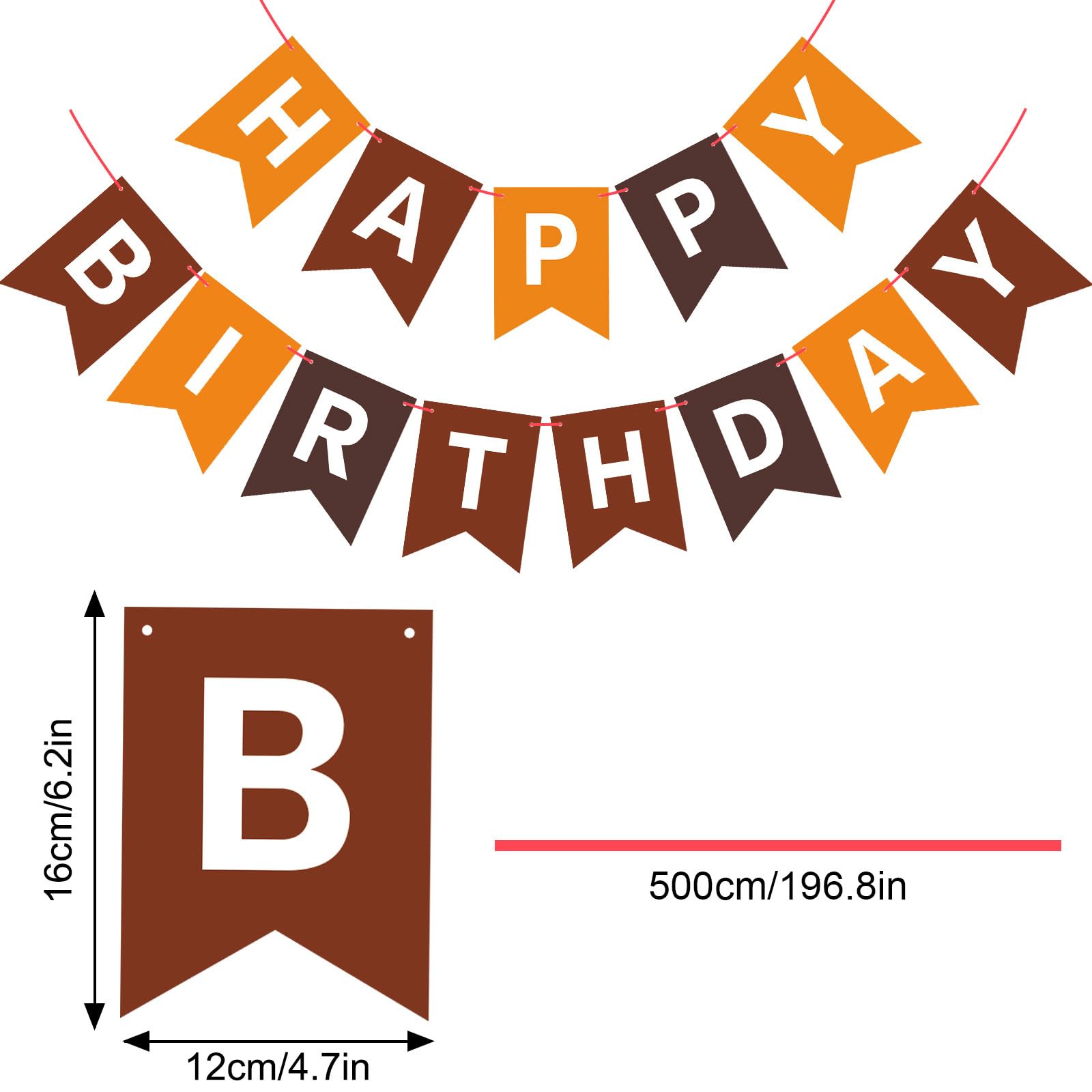 EASY-TO-MAKE: Each brown banner flag card size is 4.5" × 6.3". 13 paper flags that spell the phrase "HAPPY BIRTHDAY" on 1 roll strand (length 16.4ft). You can use a plastic needle with the ribbon to easily string all the letters together without effort, the spacing between the flags is adjustable. You can move the triangle flags to have a different look.