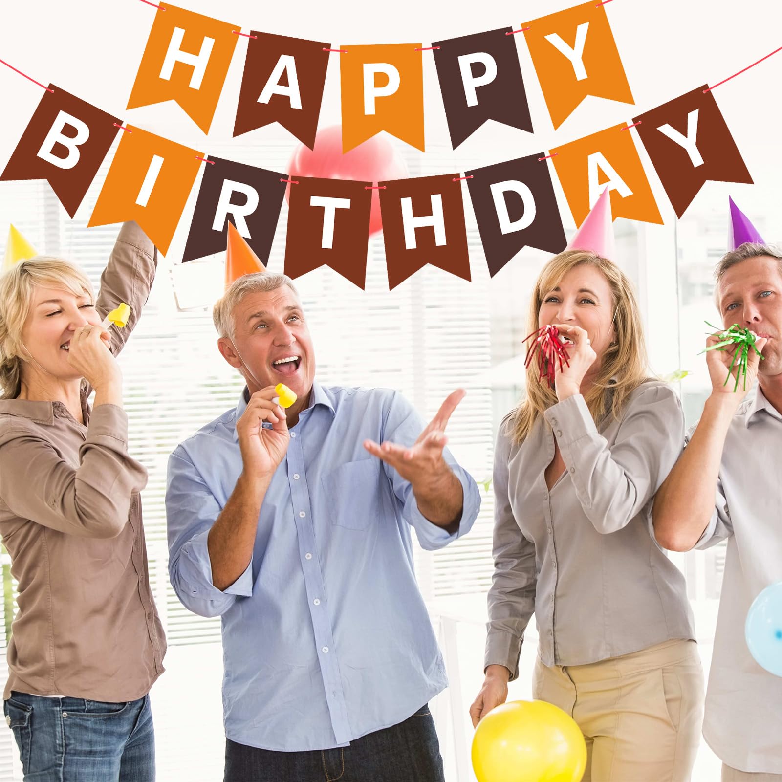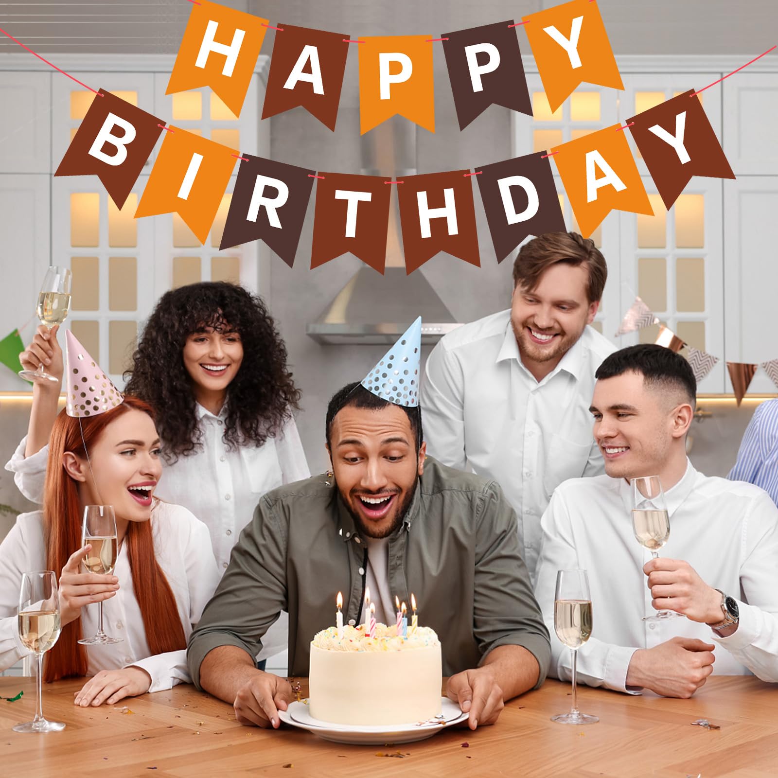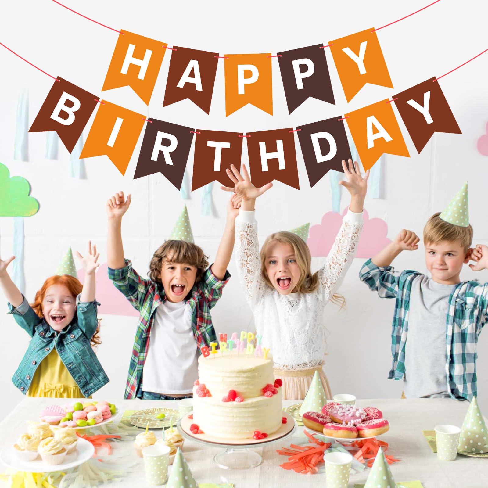 HIGH QUALITY: Made of high-quality ECO-Friendly paper, resistant and reusable. Beautiful and lively colors add luster to the space decoration. Happy birthday banner brown easily fit any wall, fireplace, gift table, buffet table, garden, living room, family room, banquet hall, indoor or outdoor.