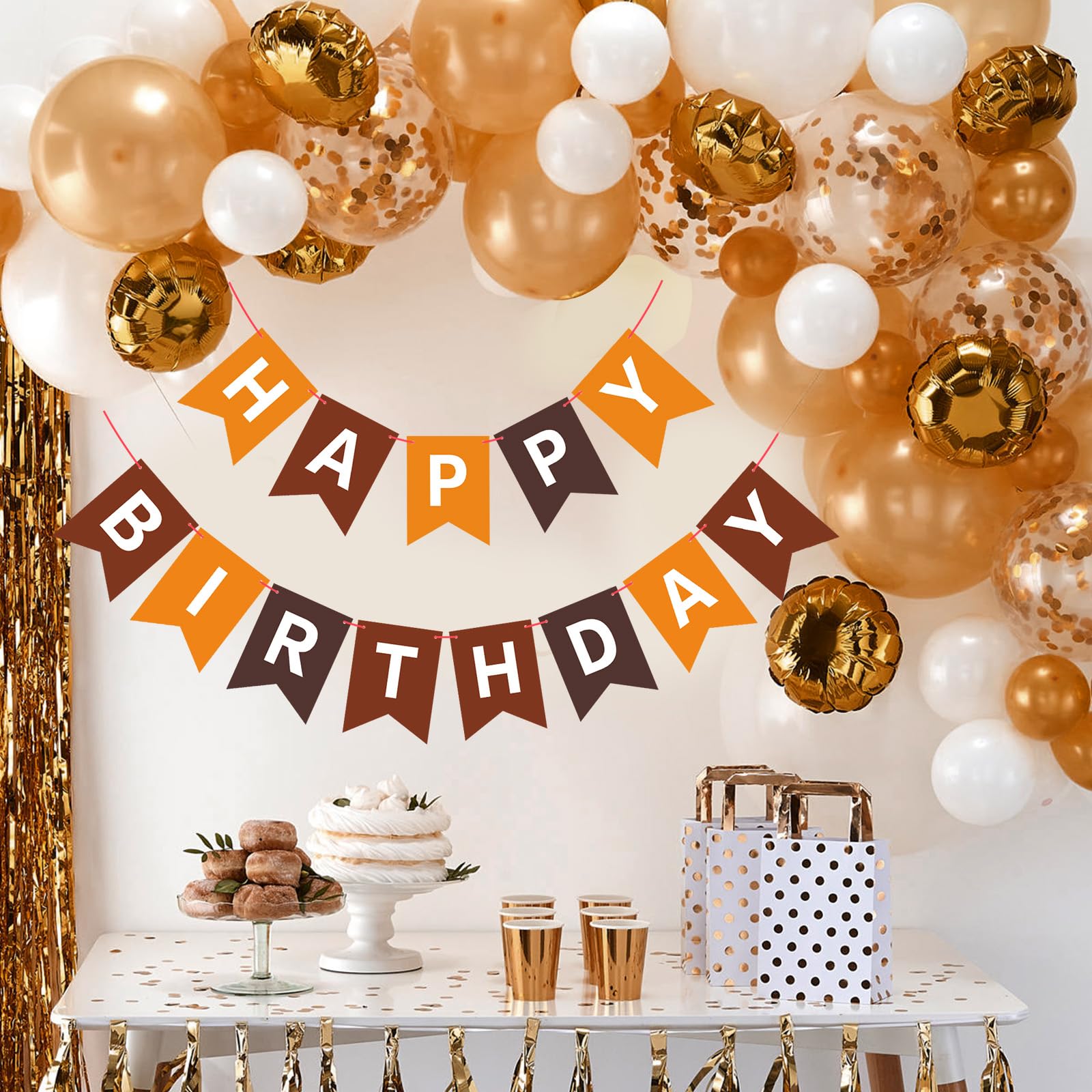 MULTIPLE APPLICATIONS: Brown happy birthday banner is well-made and will last for many birthdays in the future. Suitable for birthday events of any age: You can use it in a sweet 16th, cheers to 30th birthday, or even your grandparent’s 80th birthday decorations. An excellent background for birthday party photos and elegant birthday garland decoration add color to the overall party space.
