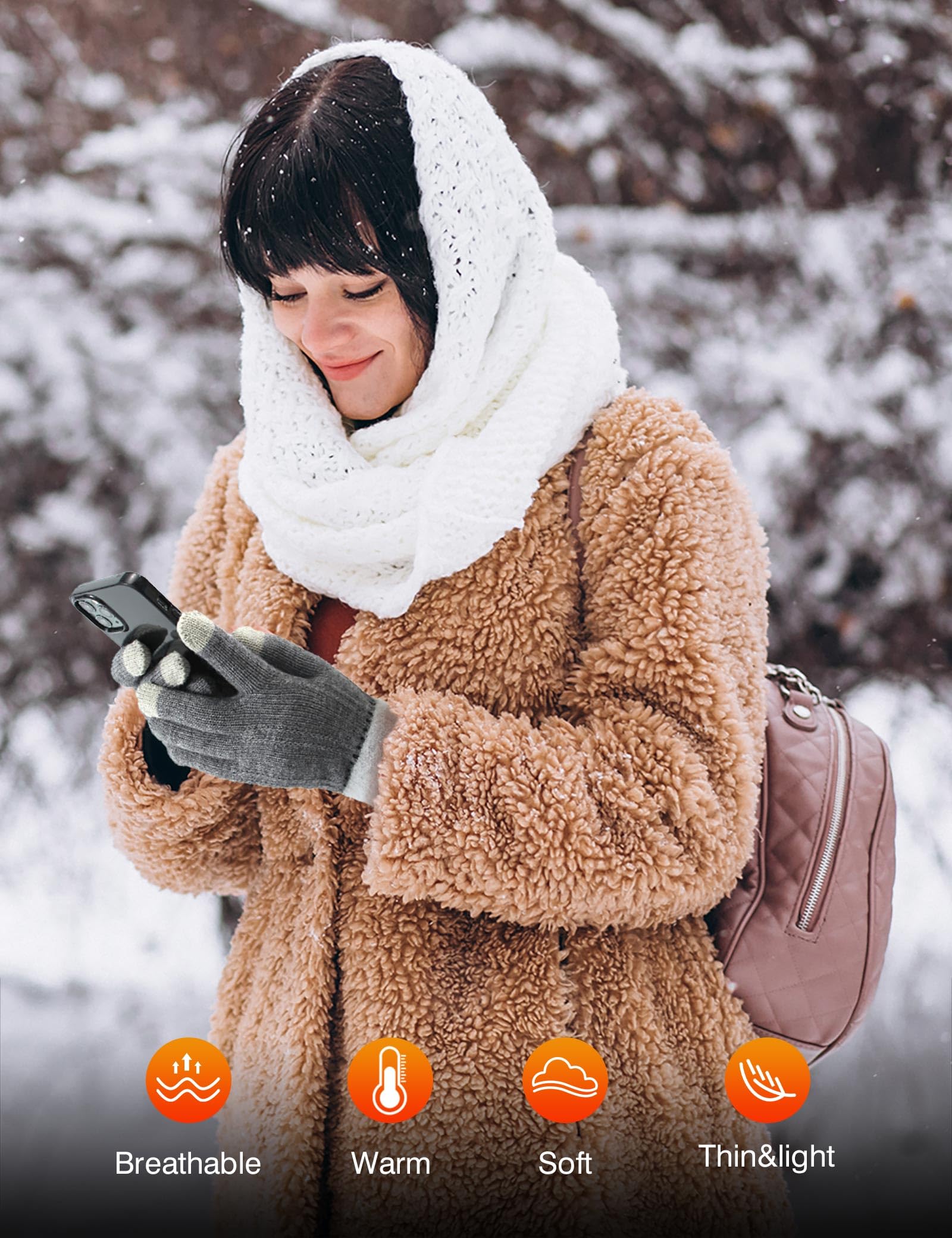 3 Touchscreen Fingers Design : Each pair of touchscreen gloves is equipped with highly sensitive conductive yarn on the thumb, index and middle fingers for easy use with smartphones, tablets and other touch devices. No need to remove your gloves when tapping, swiping or scrolling.