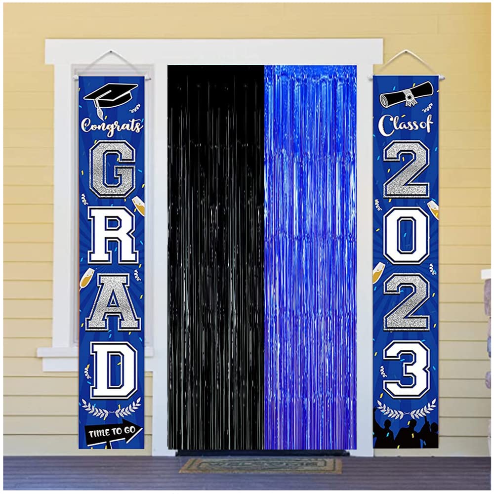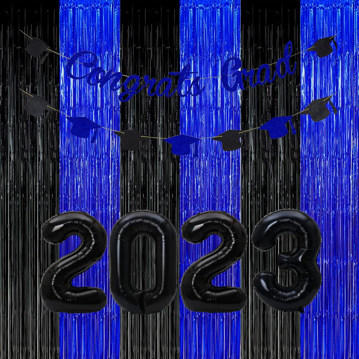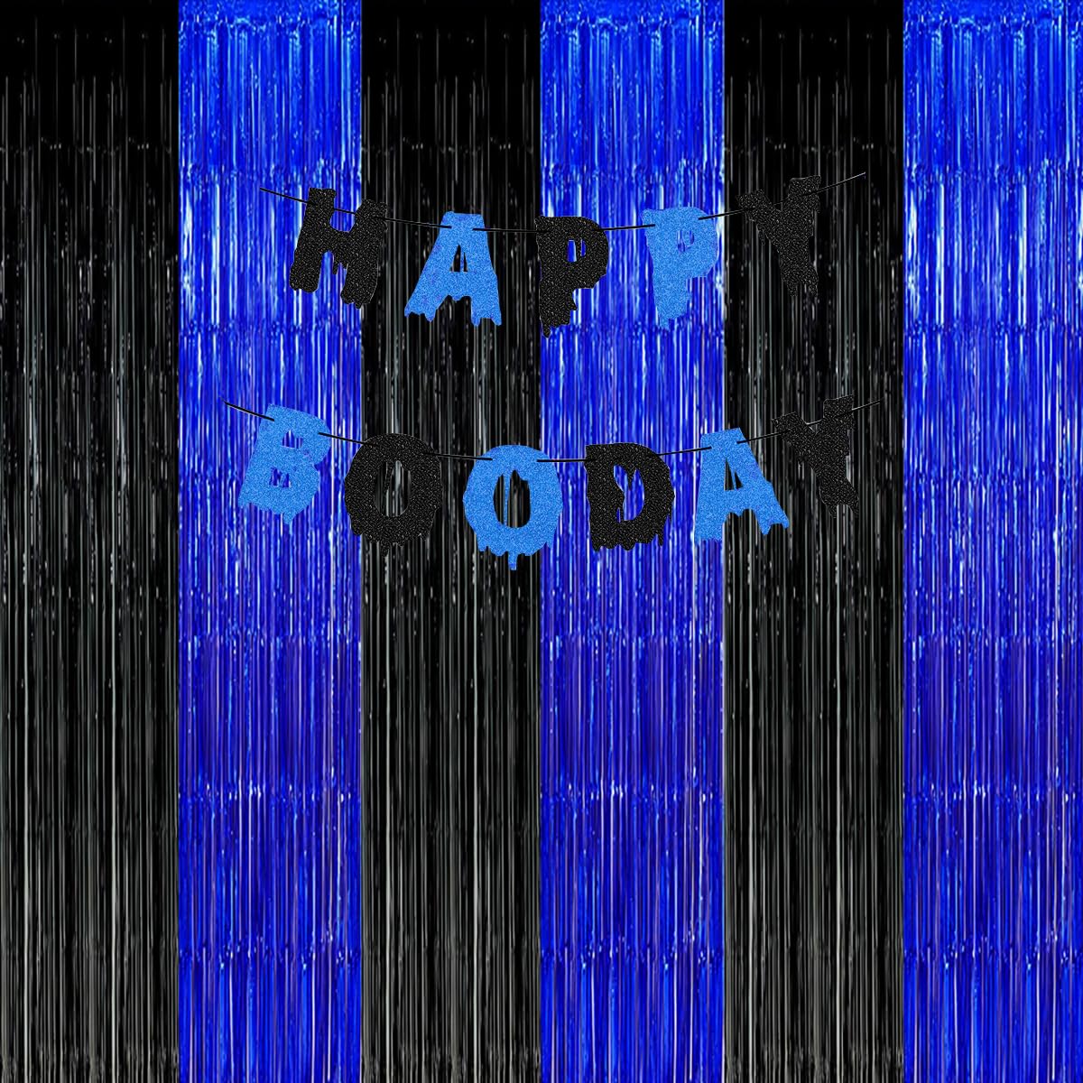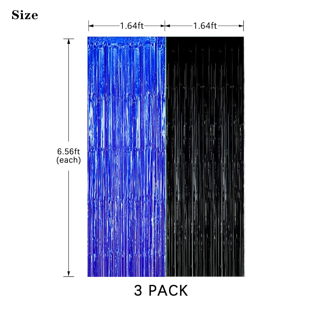 Black Blue Party Decorations Backdrops, Gaming Party Foil Fringe, 2025 Graduation Black Blue Curtains Backdrops Asonlye black blue party backdrop will make your party full of enthusiasm and surprise! Get creative with the party essential. The blue and black foil fringe curtain as a complement to a holiday party and birthday party of your own desig. Fashion blue silver party backdrop decorations includes: - 3Pcs Blue Black Fringe Curtain ( 3.28 x 6.56 ft ) How to make tinsel curtain: 1. The fringe curtain come with a nice adhesive strip on the top of back which makes it easy to hang and take down! This shiny foil curtain backdrop works well hung in a doorway or hang a few of them side-by-side on your wall to create a shimmering streamer curtain. 2. After the celebration, you can kept them up add to party corner area. Tip: We recommend not opening package until you are ready to put up.