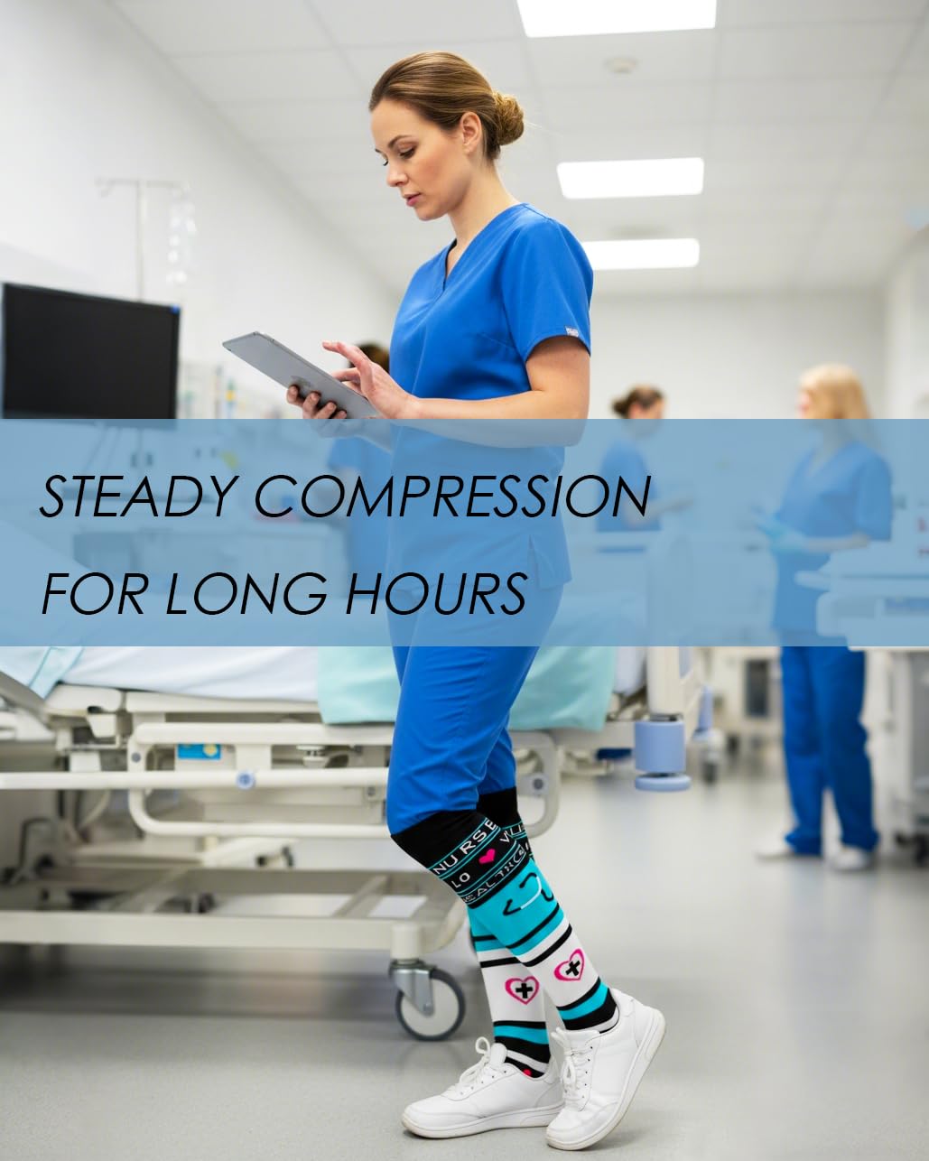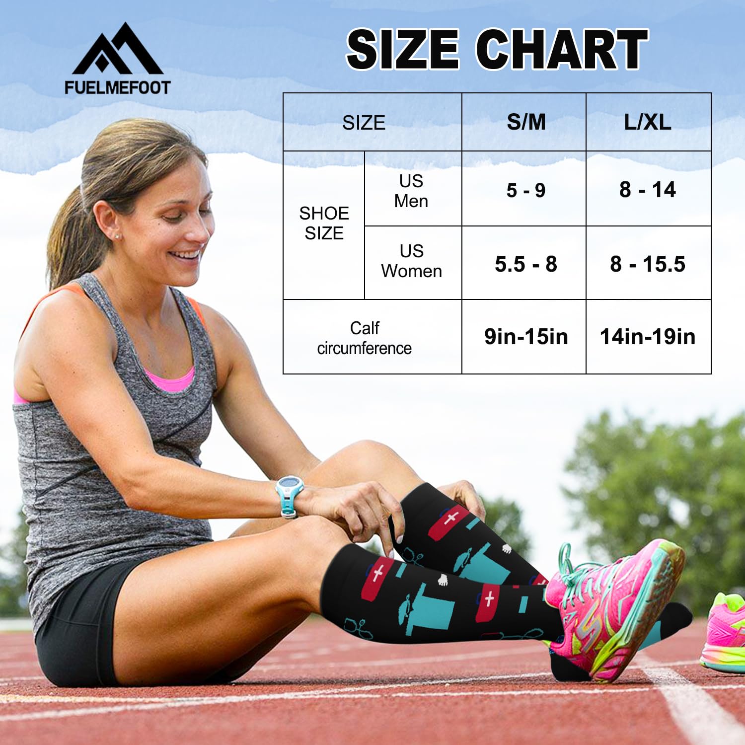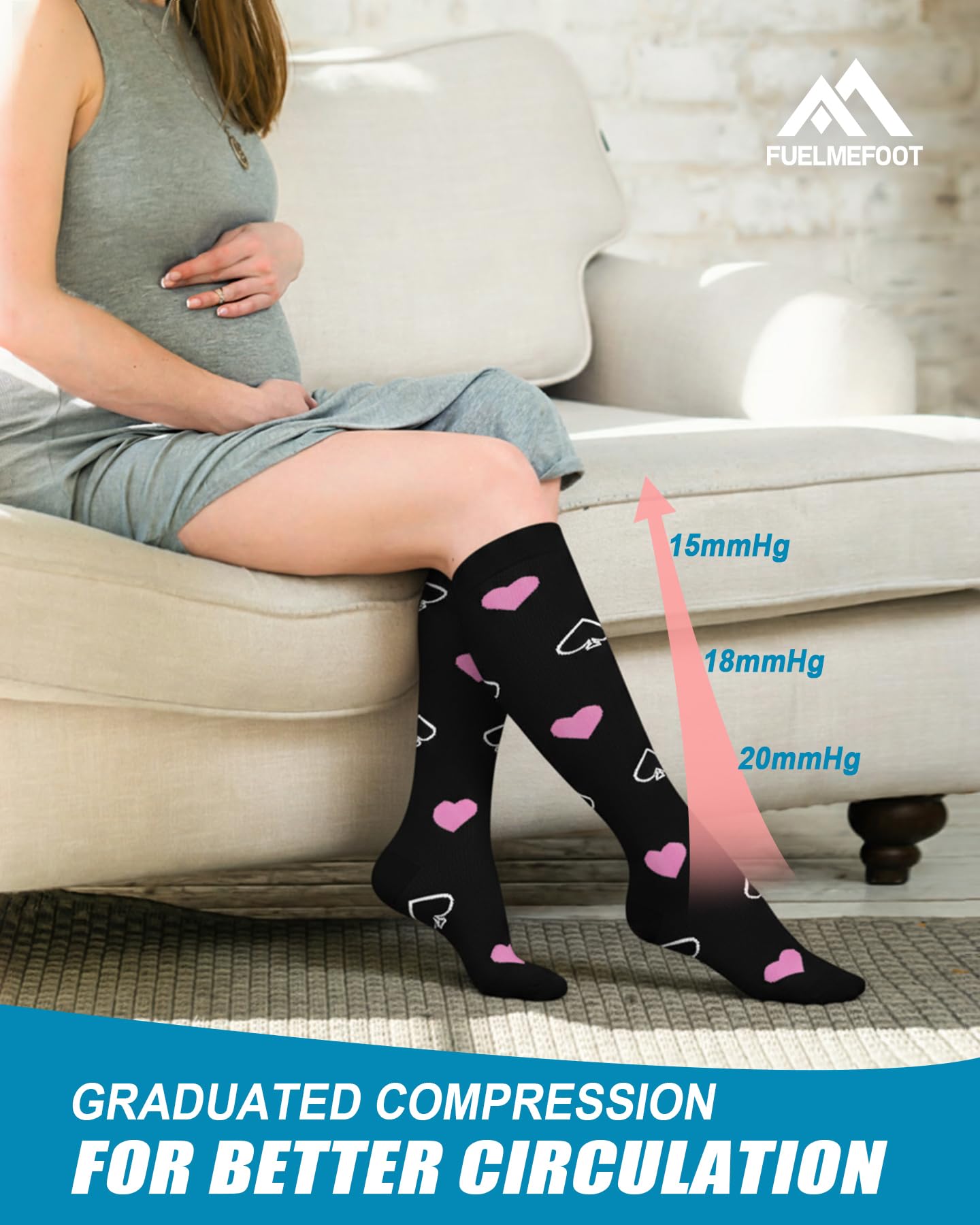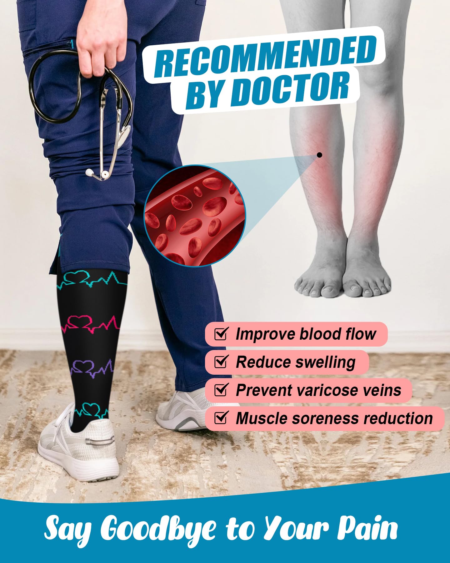 【ULTIMATE COMFORT & SUPPORT FOR ALL-DAY WAER】Our compression socks' delivering 360-degree stretch for all-day comfort and support, these compression socks offer the perfect balance of pressure and flexibility, with 15-20mmHg graduated compression. Whether you're on your feet all day or traveling, these socks enhance circulation, reduce swelling, and keep your legs feeling refreshed. Perfect for athletes, nurses, pregnant women, and anyone on the go.