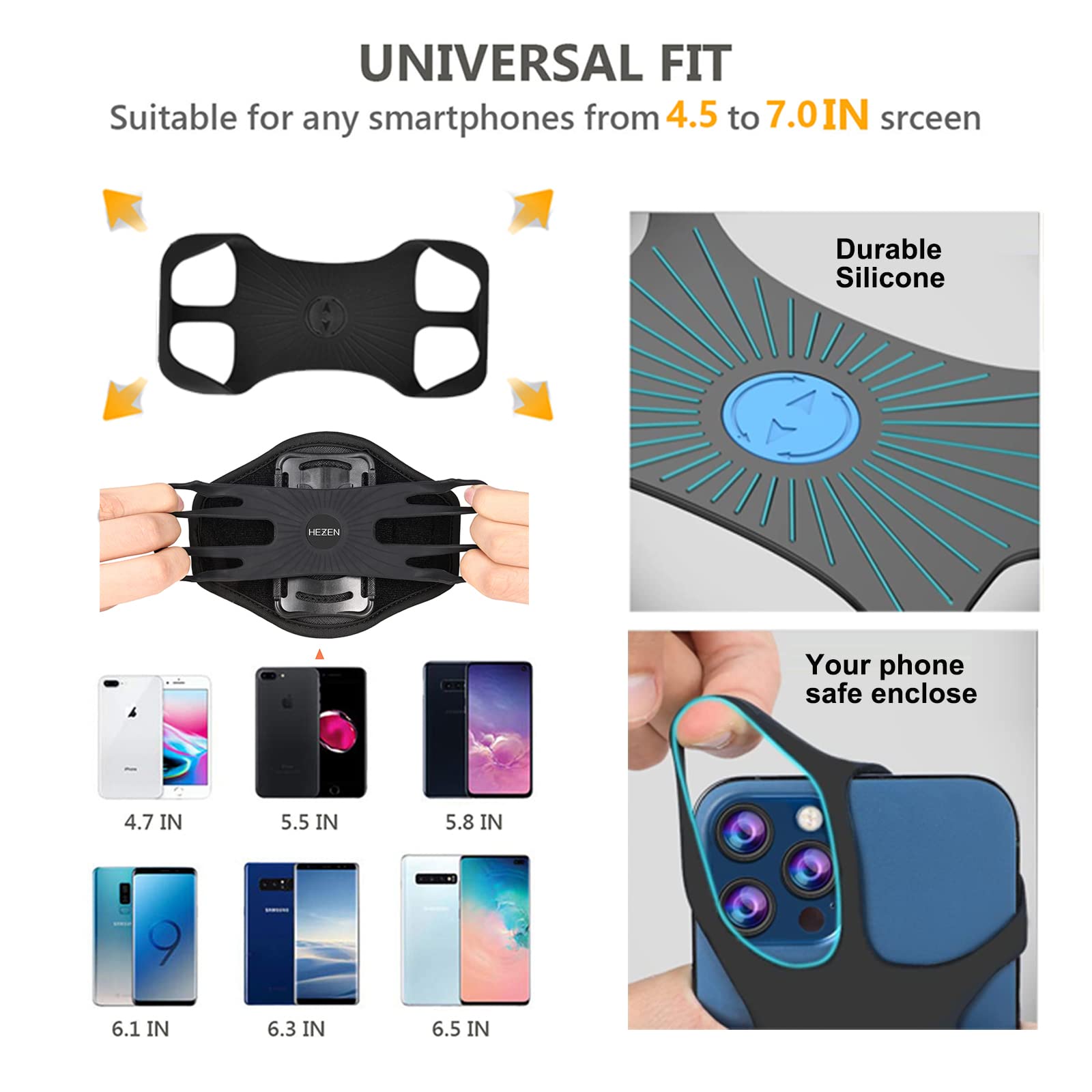 3.The phone clamp are made of Silicone. The backpack clip is suitable for most smart phone sizes on the market, such as iPhone, Samsung, and more.