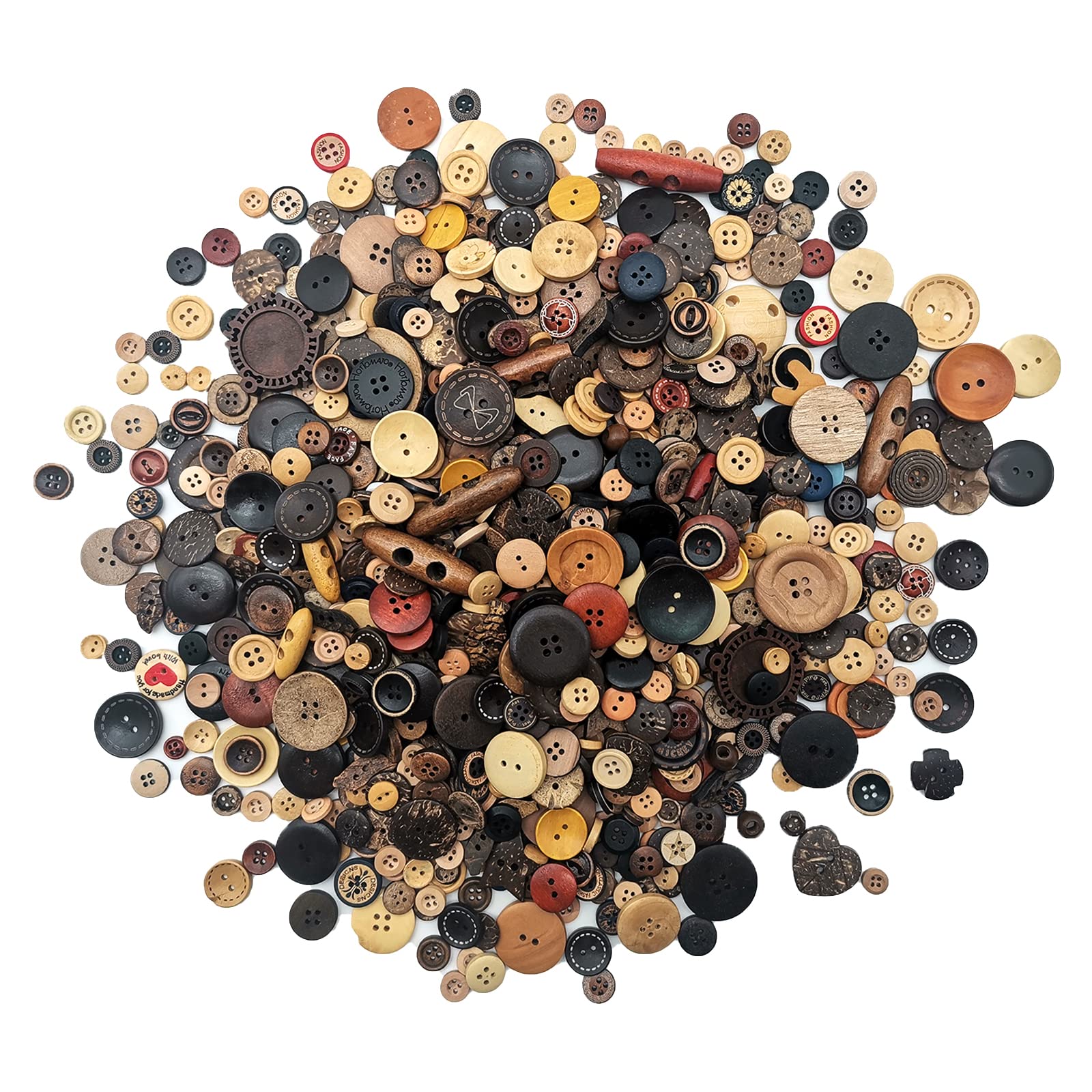 ❄️ WIDELY APPLICABLE: Assorted wood brown buttons suitable for art and craft project, knitting, collections, crochet, kid's shirt, crafts DIY, clothes sewing, scrapbook decoration, etc. They can be applied in various situations, such as replacement for kid's shirt,crafts making, clothes sewing, wedding party, Thanksgiving, Christmas, and DIY projects.