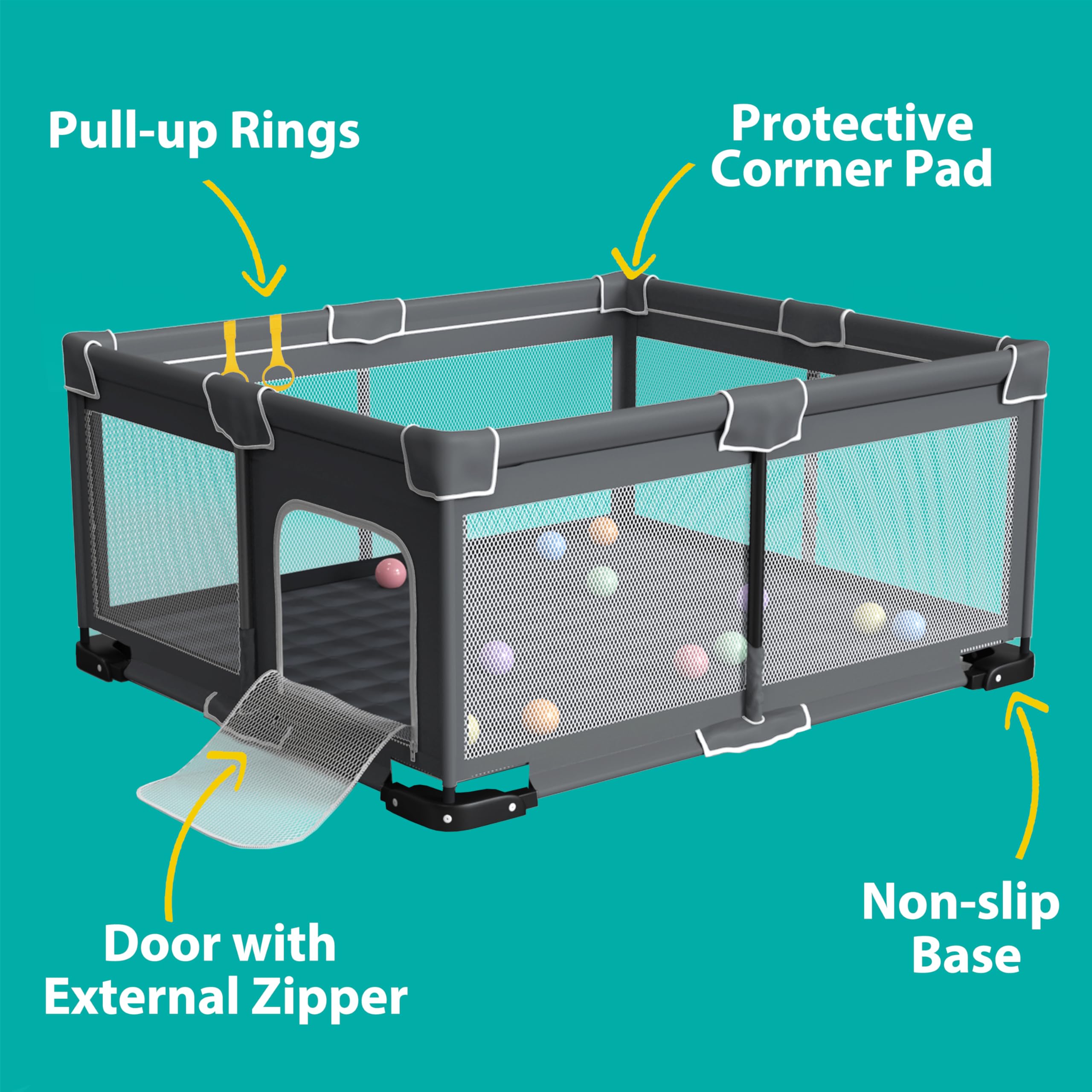 Baby's Safe Play Area:At ICAREWAY, safety is our top priority. Thatβs why our foldable play pen is constructed with high-quality materials, including robust steel pipes and sturdy fabric net siding, to provide maximum stability and ensure your baby's safety during playtime