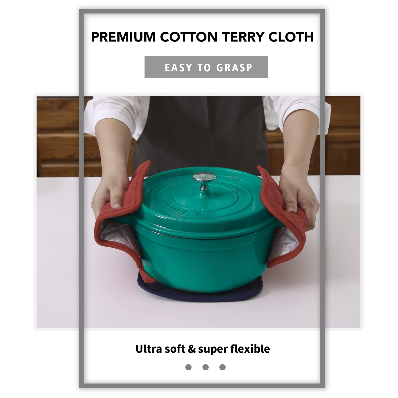 QUILTED AND PADDED - Heat resistant up to 400 degrees allowing safe removal of baking dishes and cast iron from the oven and hot pots from the stove.