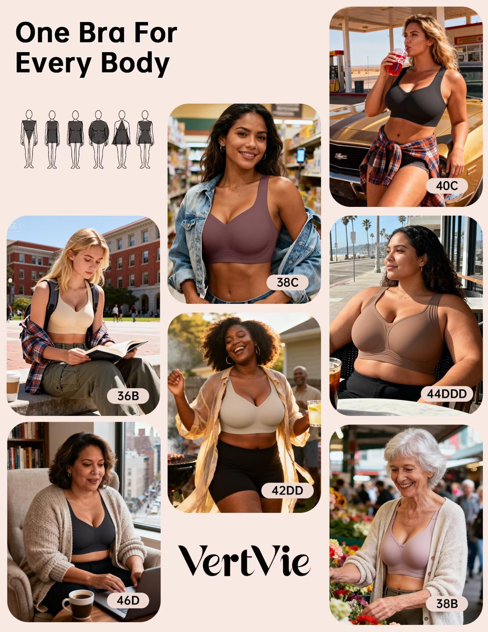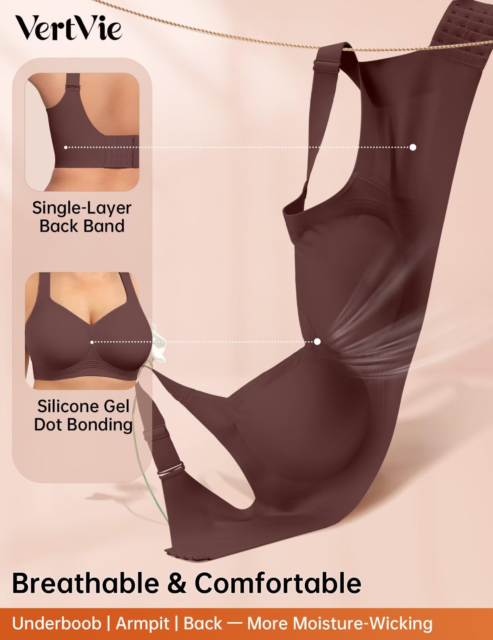 All-day Comfort: We’ve perfected comfort with our jelly wireless bra. Crafted from silky, breathable fabrics, this seamless bra feels like a second skin. It’s the go-to comfortable bra for women who refuse to compromise on support. VertVie bras offer a gentle uplift without any poking or digging, redefining what it means to be a supportive bra for older women and anyone seeking all-day ease