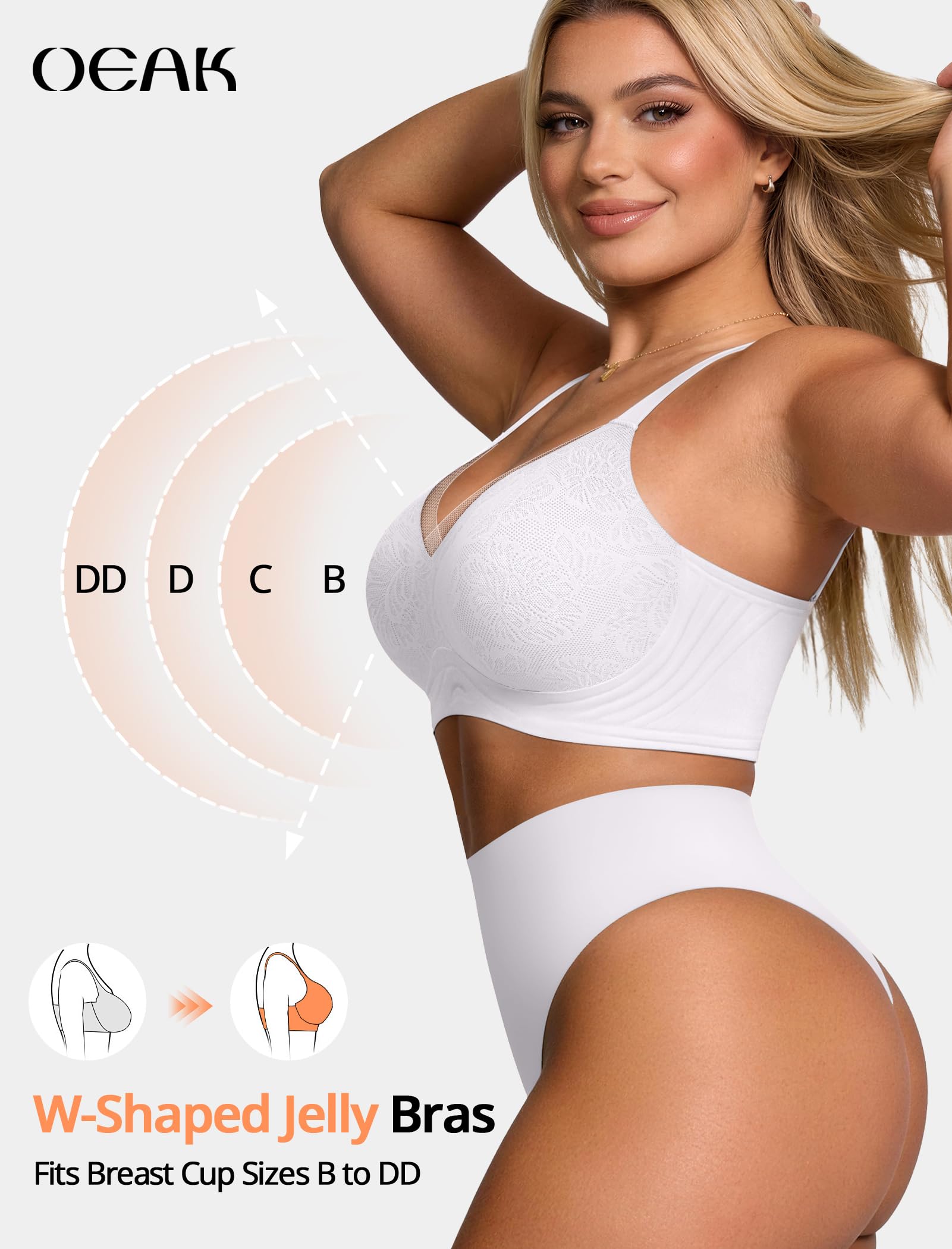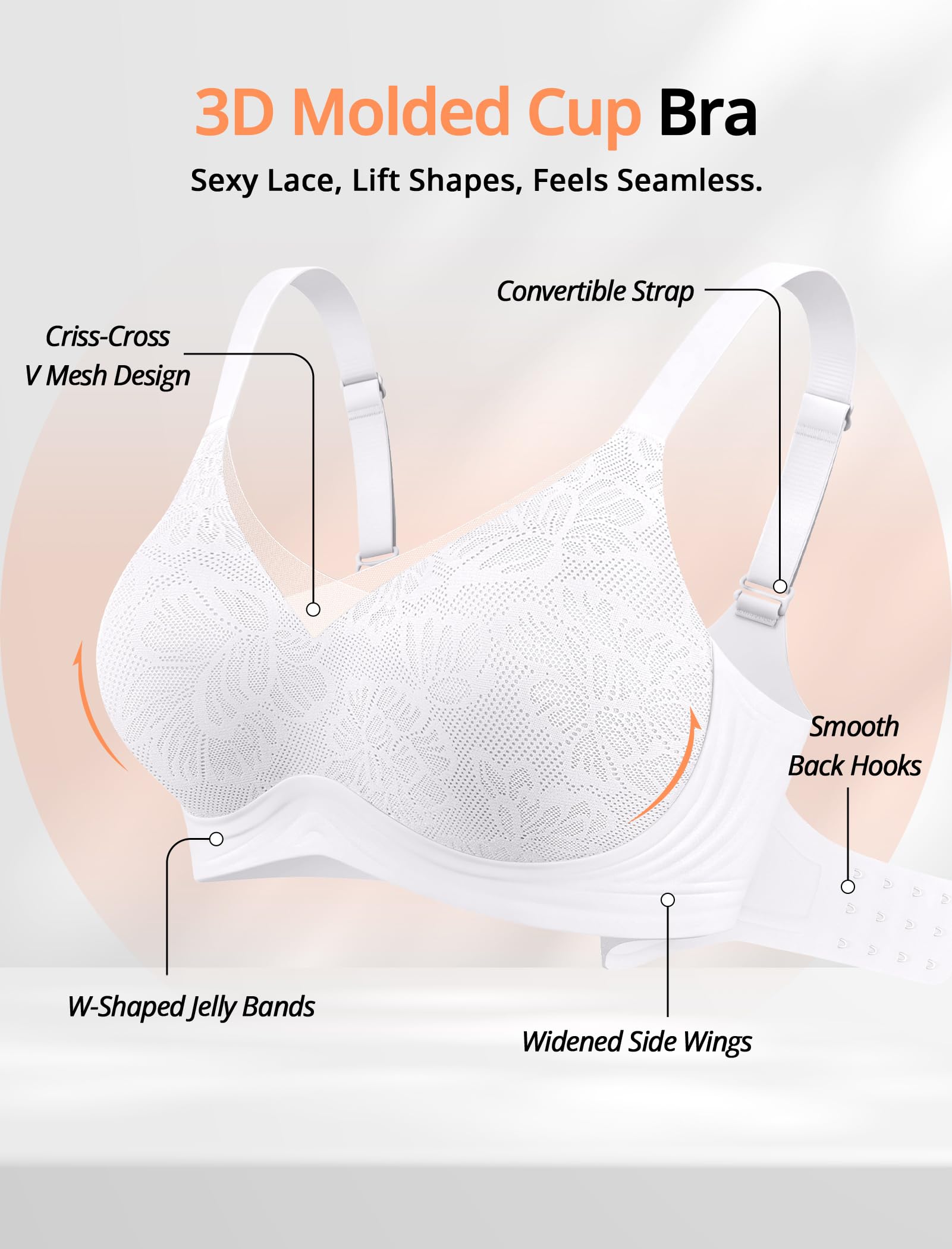 Wireless Bras with Support and Lift - Our wirefree bras feature a W-shaped Jelly Band and Supportive molded cups around your breasts, giving a nice shape and adequate support for daily life. This comfort bra without underwire means no annoying wire stabbing you in the side, ensuring a buttery soft feeling all day long.
