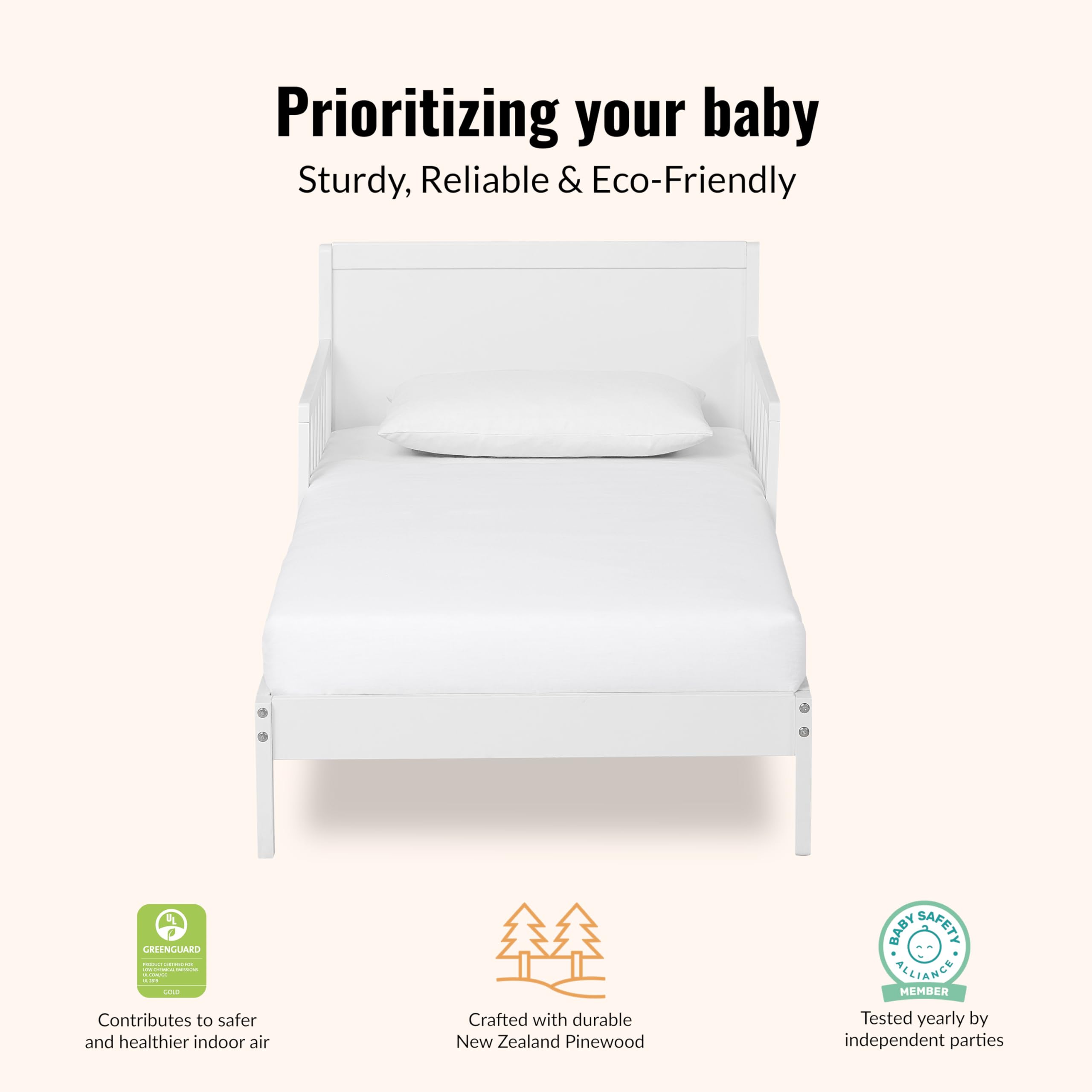 MODERN & DURABLE DESIGN – With its clean lines and contemporary style, this kids toddler bed fits any nursery or bedroom theme. Crafted from sturdy New Zealand pinewood, it’s durable, long-lasting, and quick to assemble.