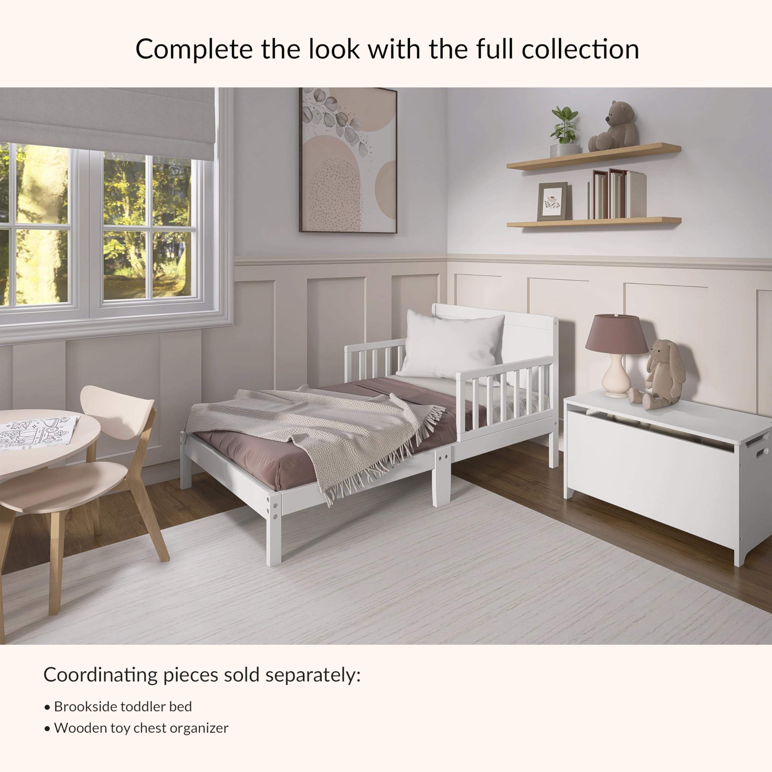 MAKE TRANSITION TIME EASY – The Brookside Wooden Toddler Bed Frame is designed low to the floor, making it simple for toddlers to climb in and out independently. Two side safety rails and center legs add extra stability for a secure night’s sleep.