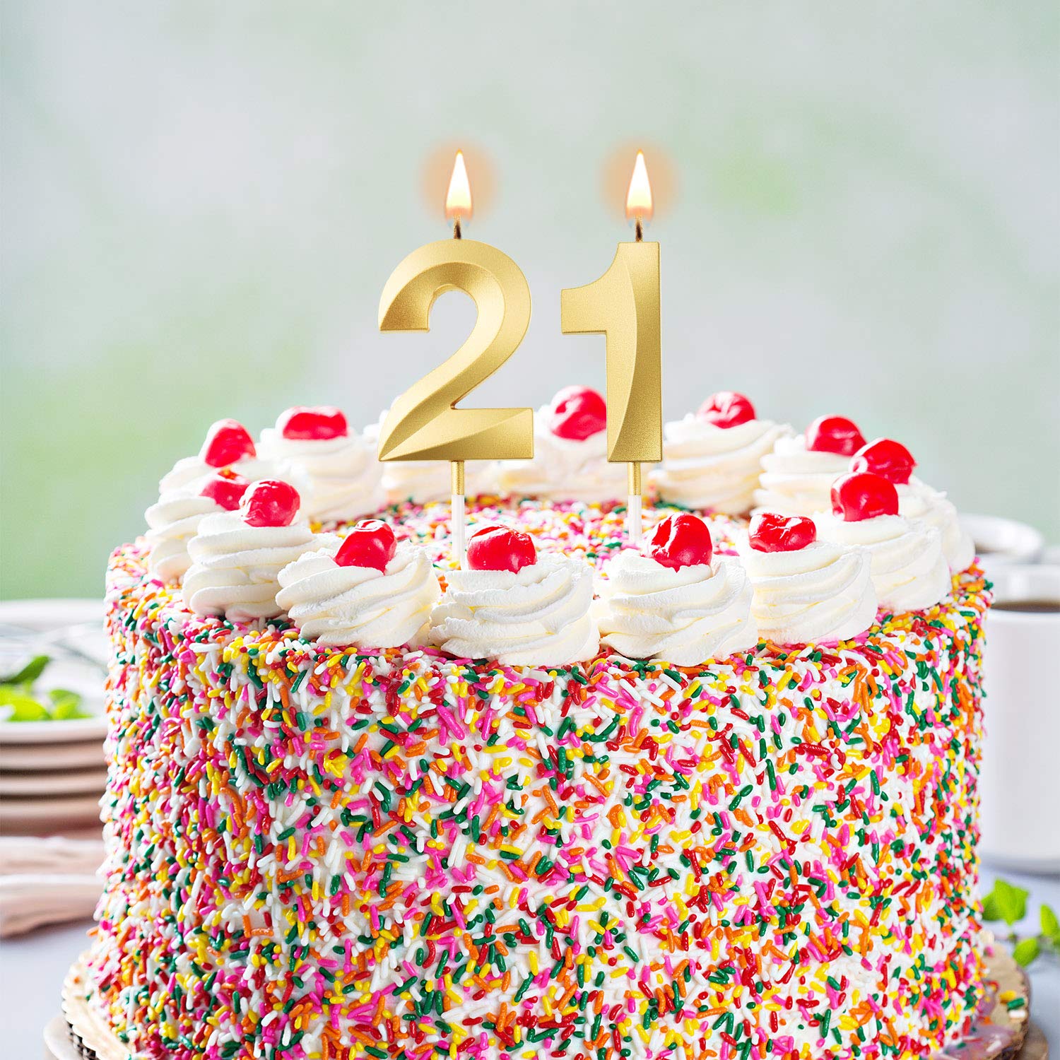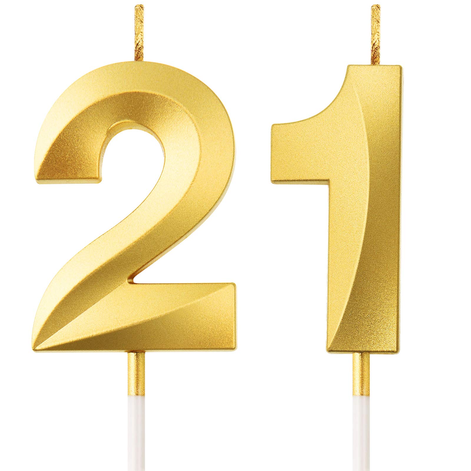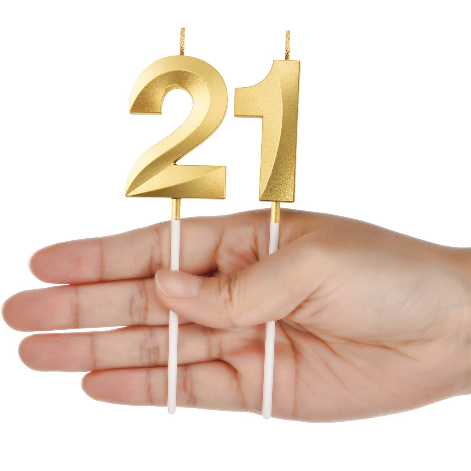 21St Number candles: comes with 2 pieces numeral candles with number 2 and 1, exquisite and beautiful appearance can meet your birthday party needs; Each numeral candle is packaged in a separate plastic box, provide good protection