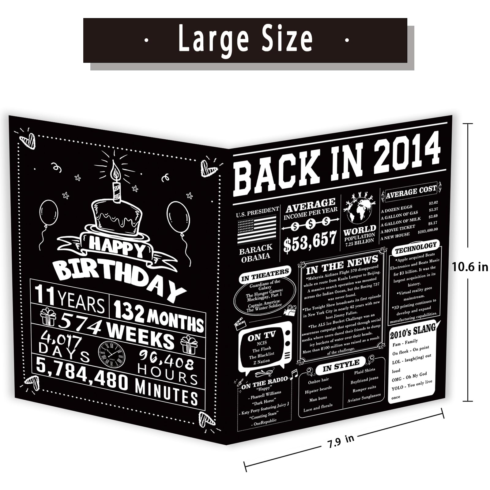Blank Inside: The 11 year old birthday card measures 10.6 by 7.9 inches. The inside of the card is blank, you can draw or write whatever you want on it to express your ideas.