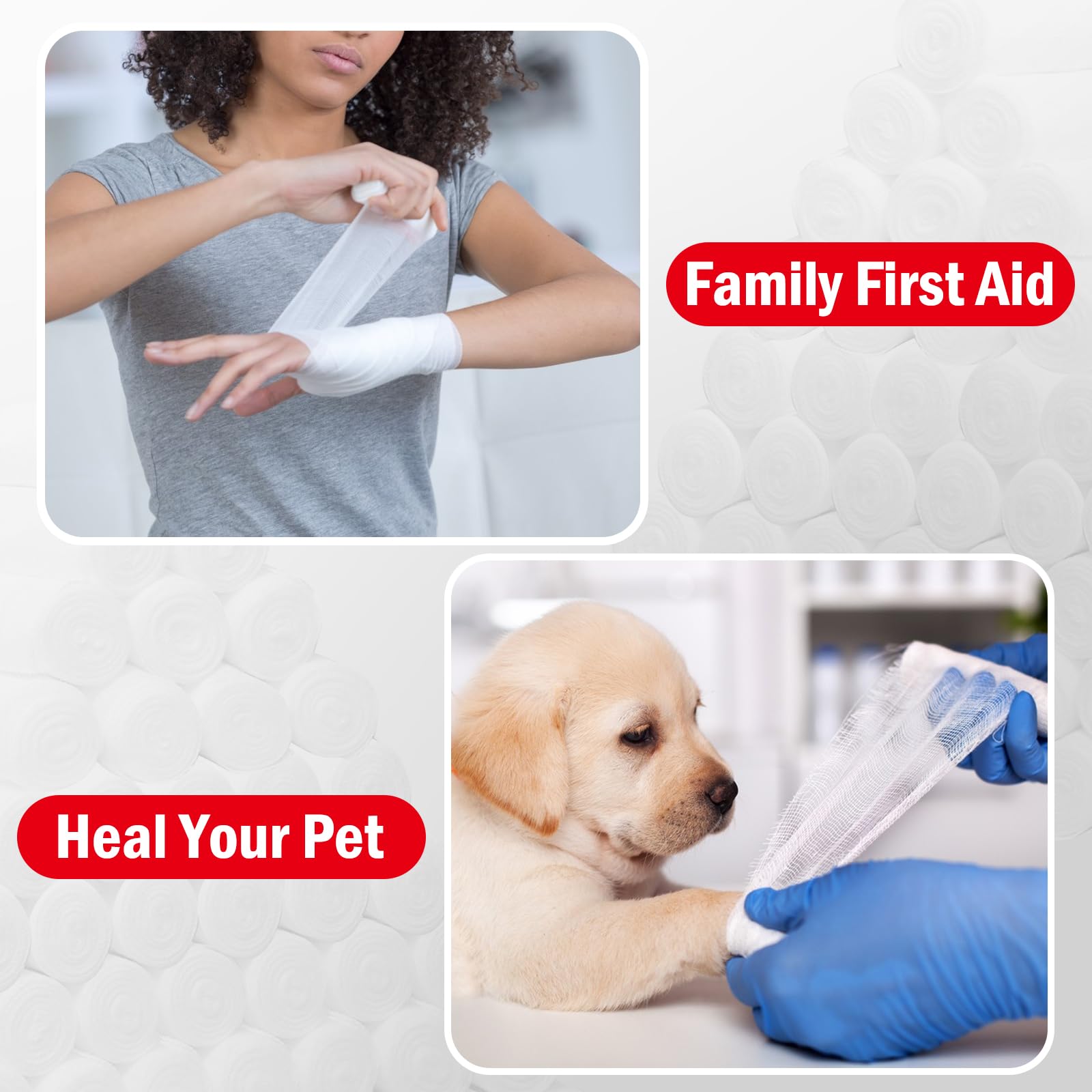 【Easy to Use and Remove】Our stretch gauze wrap rolls are economical, super absorbent and latex free. Therefore, they provide the best comfort, fast and effective healing process without lint, which can prevent the cotton fiber strands from sticking to the wound and ensure that the user has a pain free removal experience. NOTE: Do not apply directly to open wounds.