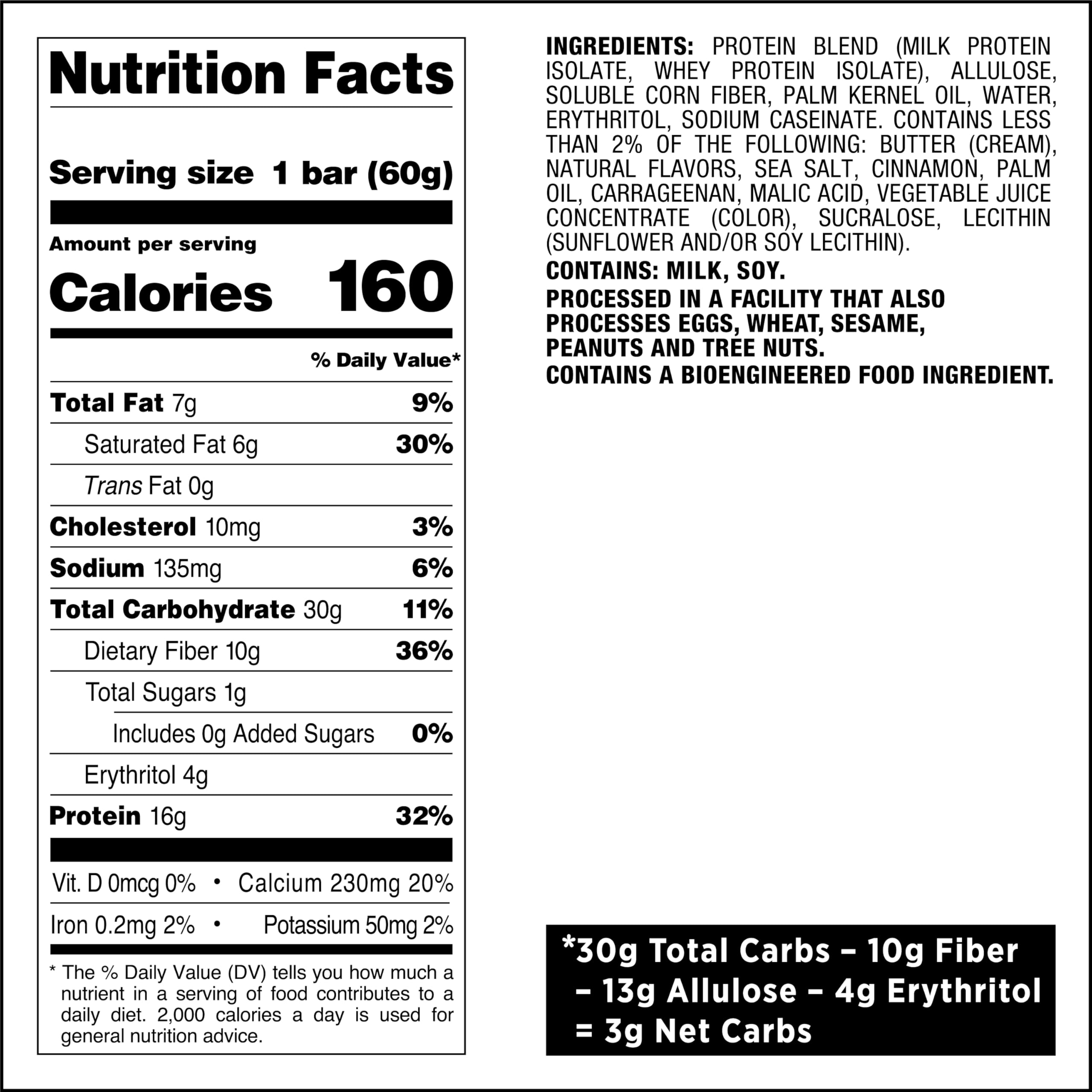 PROTEIN FORWARD. 16g of protein, 1g of sugar, and 3g of net carbs* per serving. Support your fitness goals and enjoy a crispy, chewy protein bar with the irresistibly sweet flavor of blueberry cobbler.