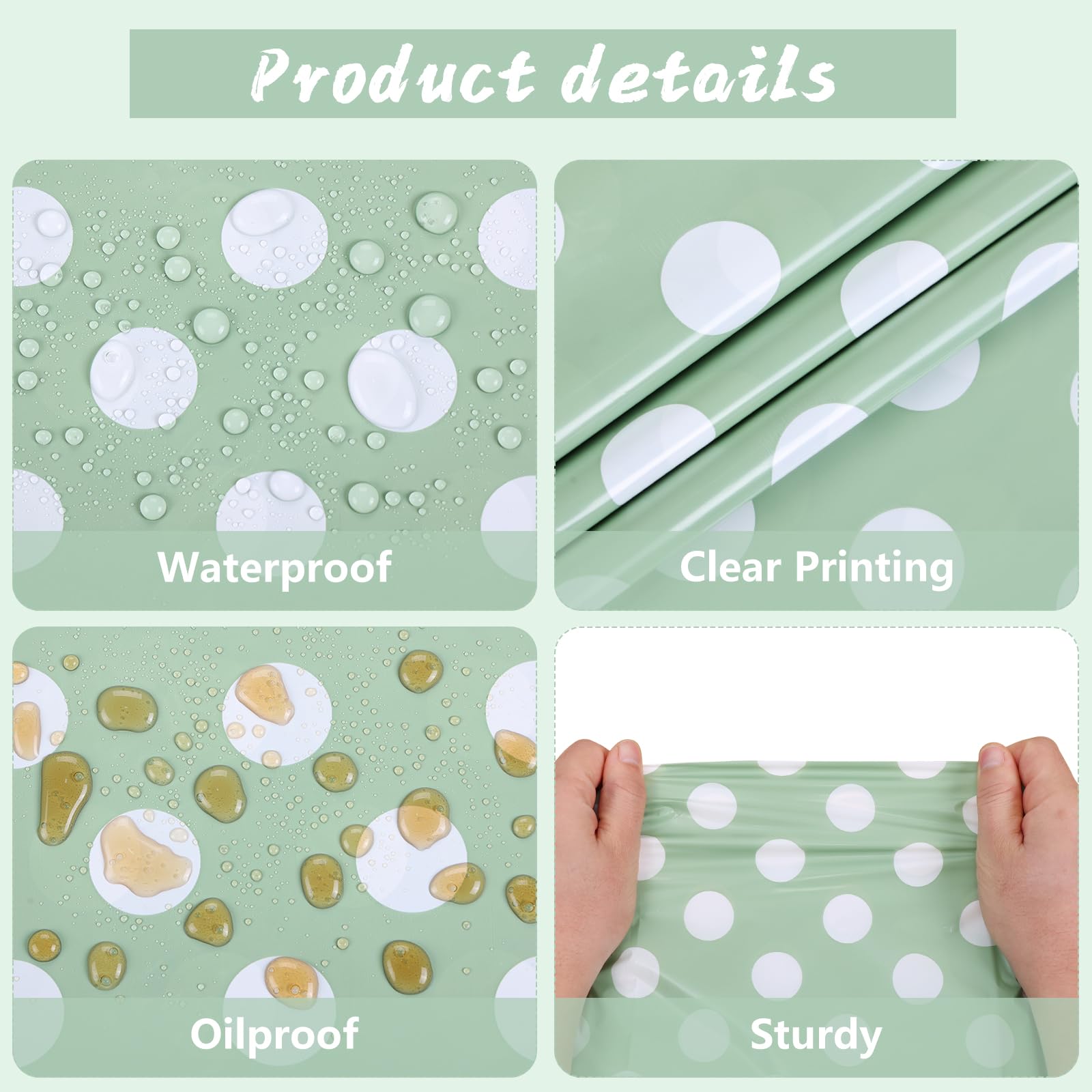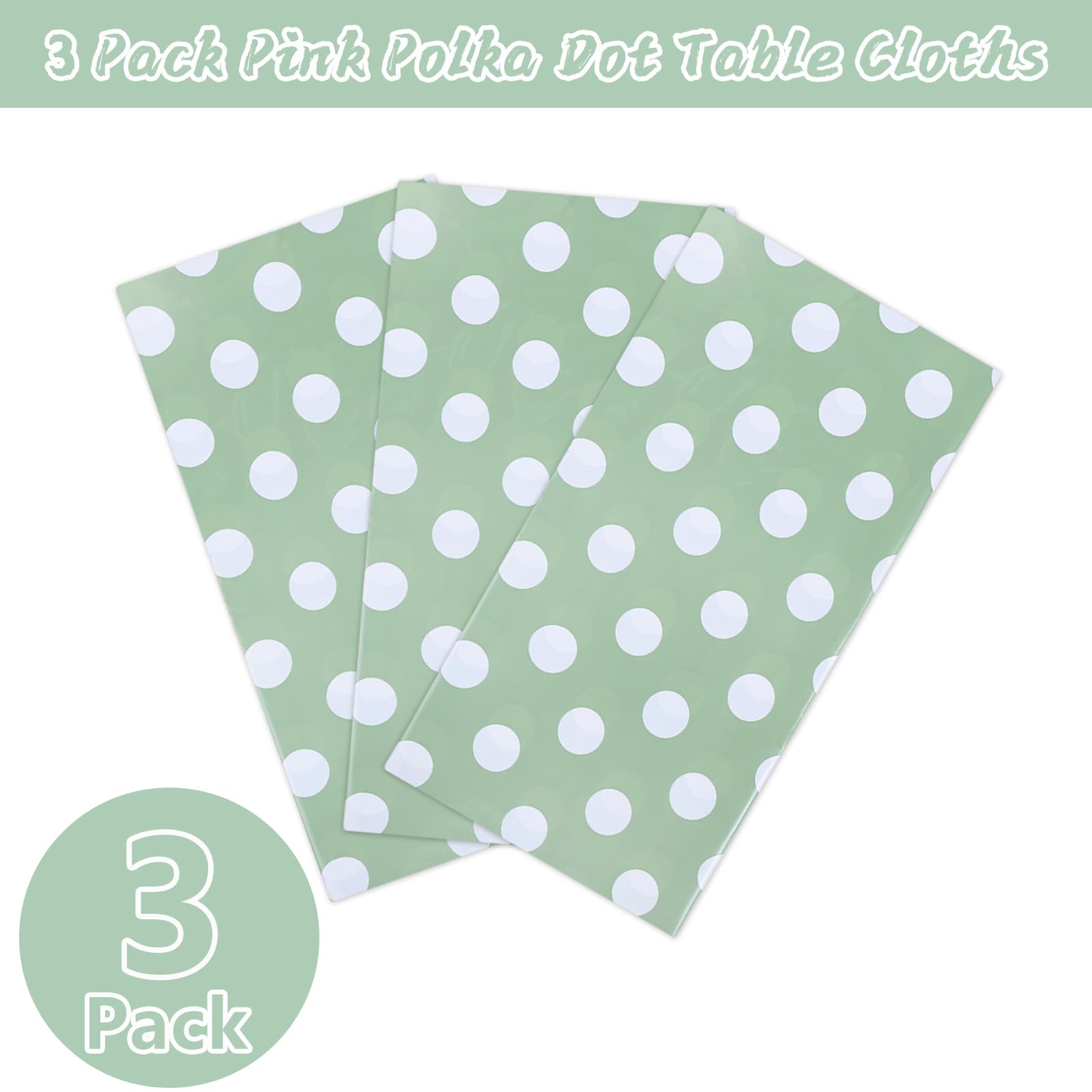 Abundant quantity: You will receive 3 pieces of Sage Green Polka Dot Table Covers , the size is 54×108 inch, the quantity can meet your needs for everyday picnic parties, sage green birthday decorations, sage green wallpaper backgrounds