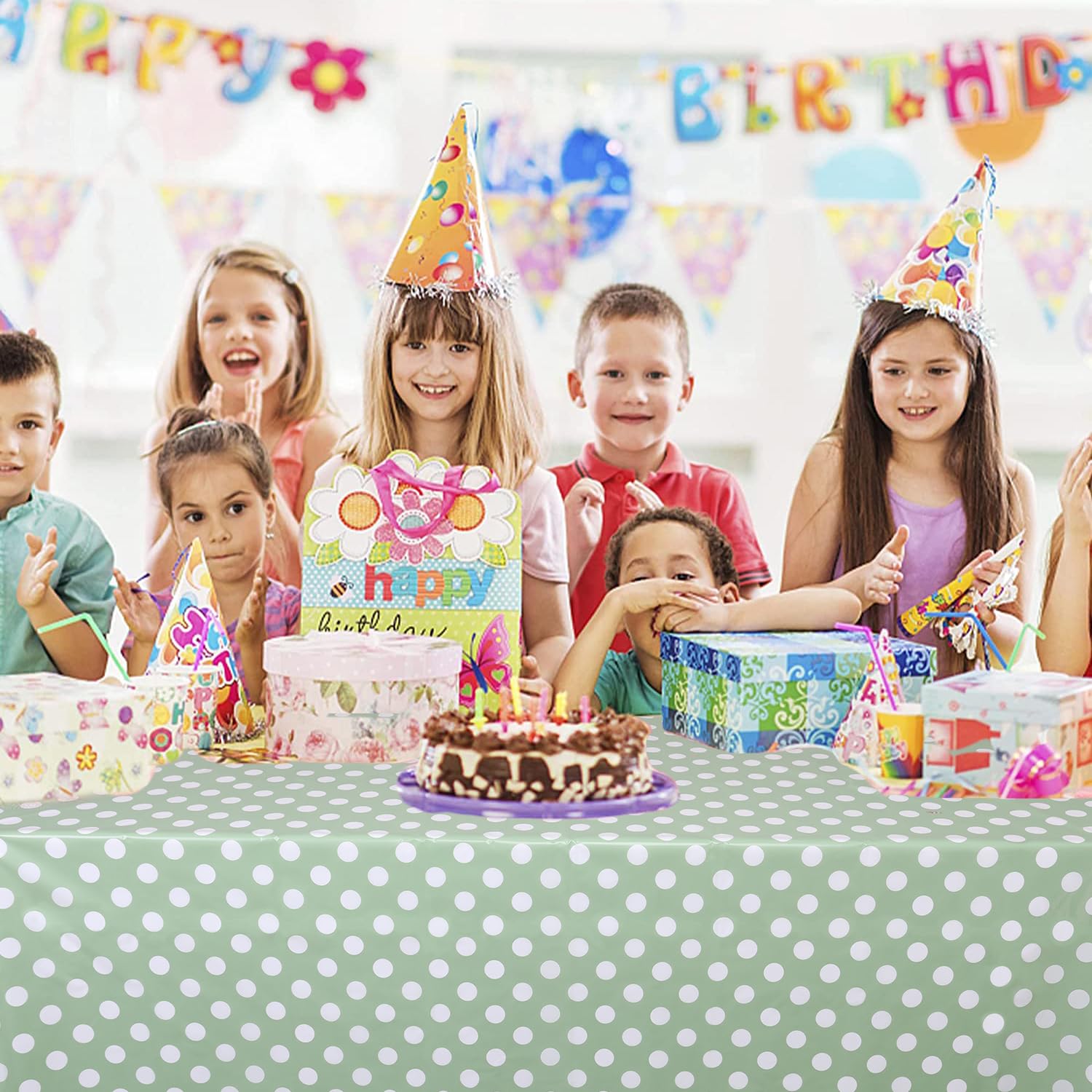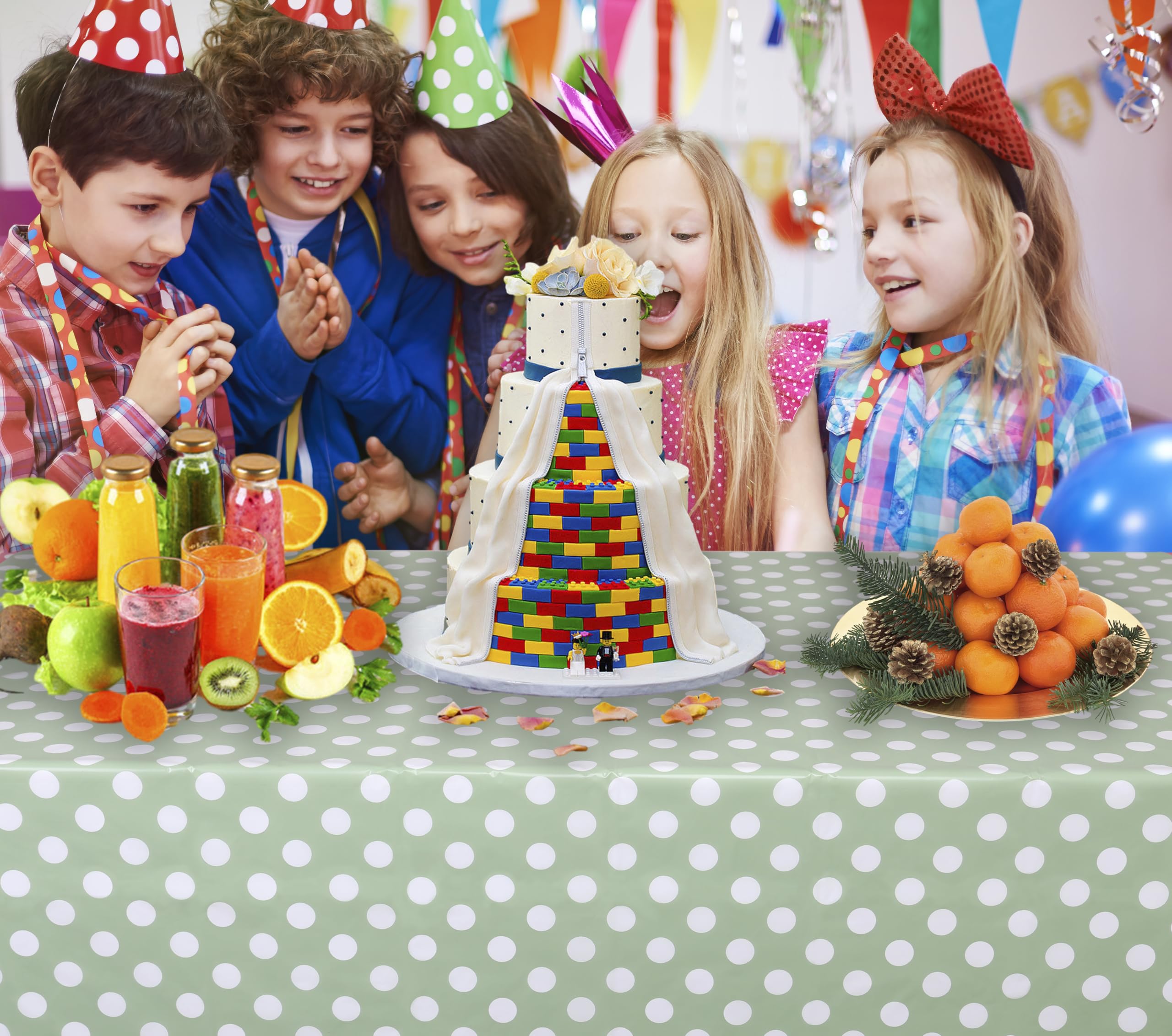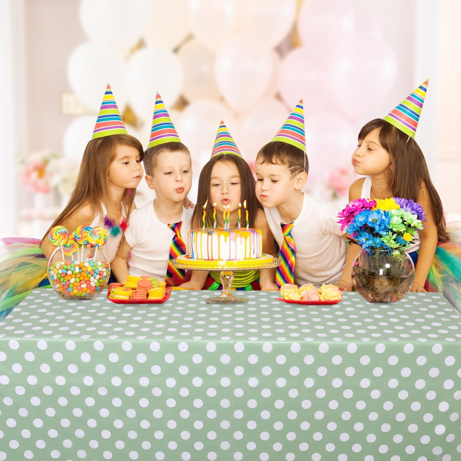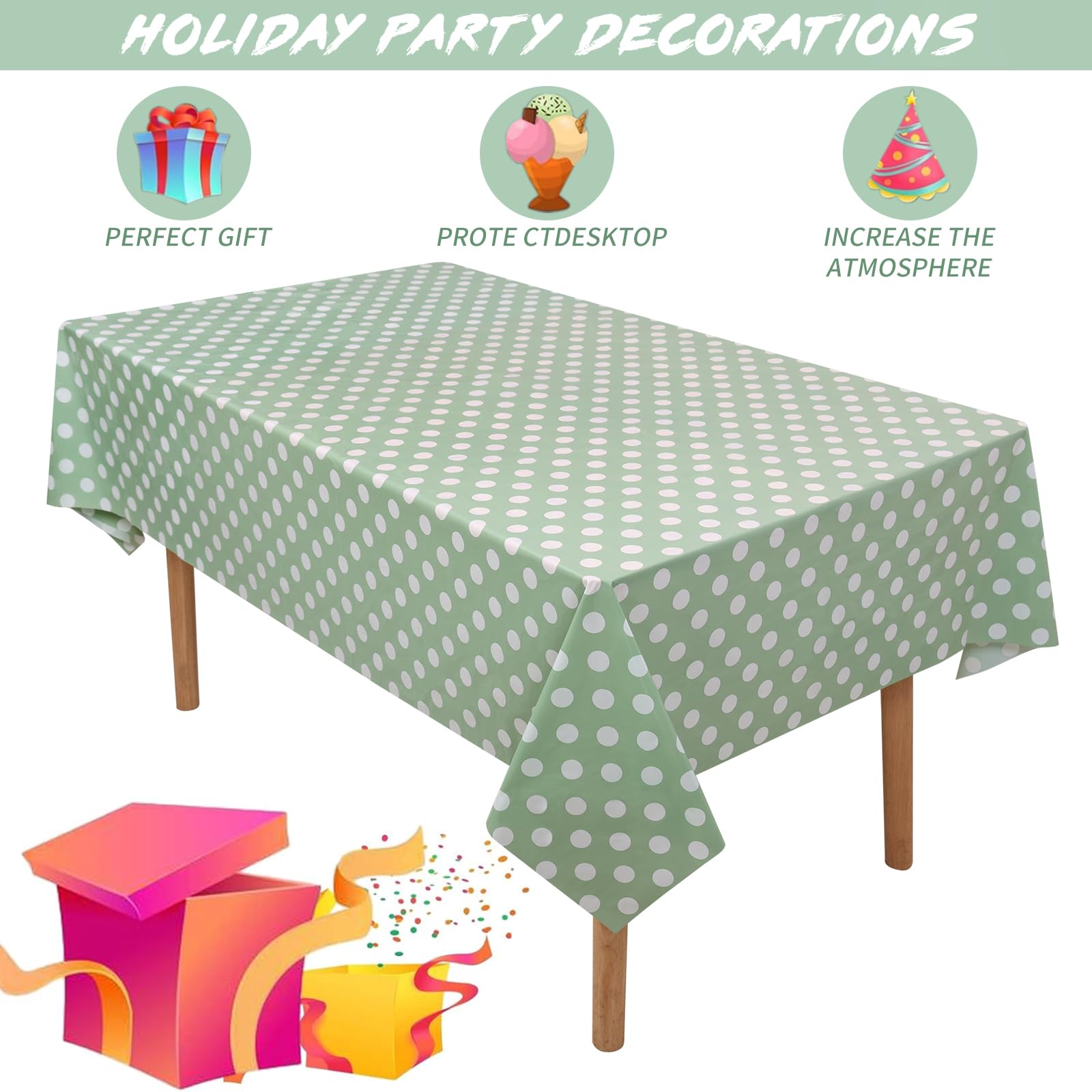 Sage Green Polka Dot Design: The Green Polka Dots Table Cloth complement your birthday theme party with a classic sage green and white polka dot design, vivid geometric dots patterns and bright colors. They have great visual effects, create a strong festive/party theme atmosphere, and are perfect for everyday use