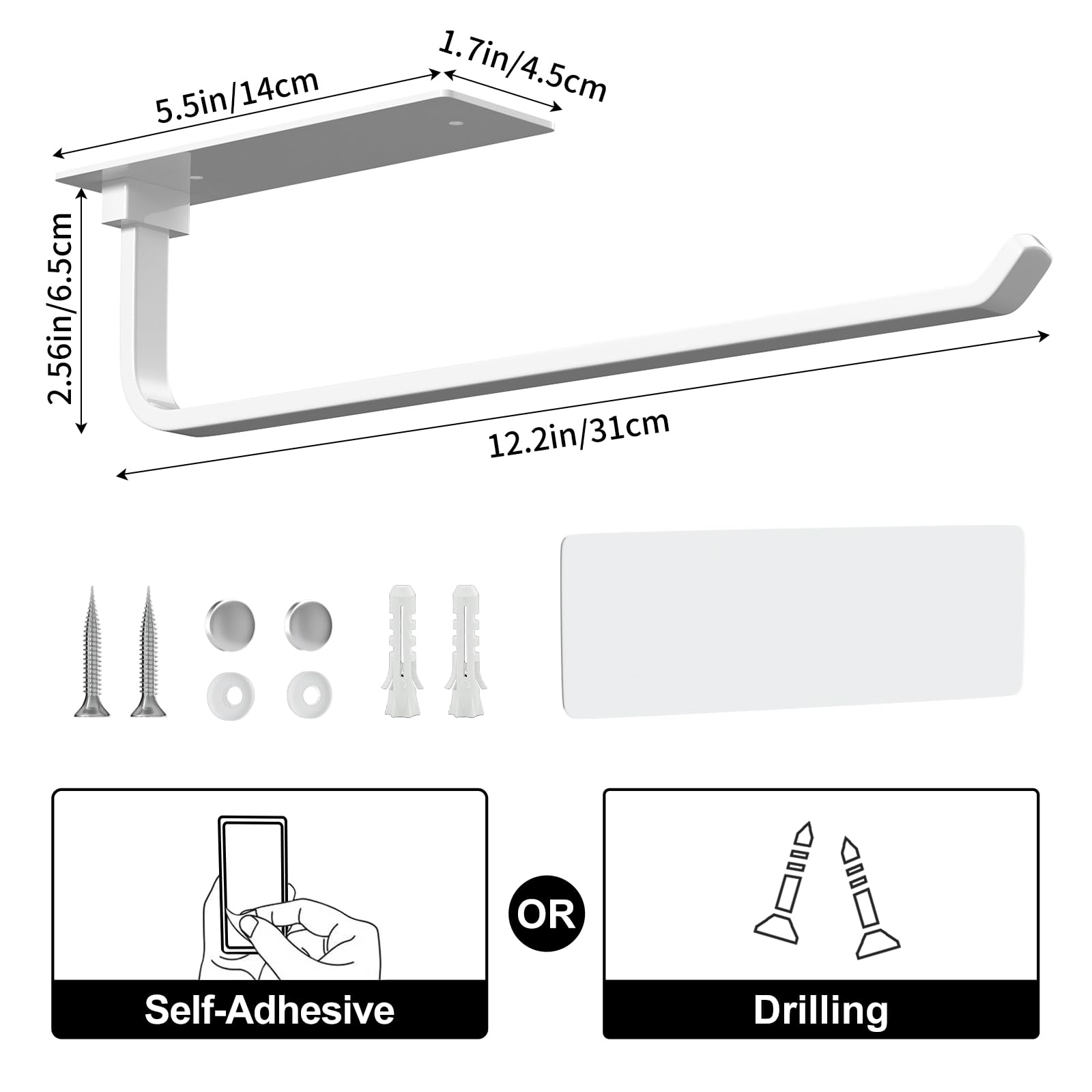 Easy Installation: There are two ways to install this paper towel holder, self-adhesive or drilled, you can freely choose the appropriate installation method according to your wall or cabinet situation.
