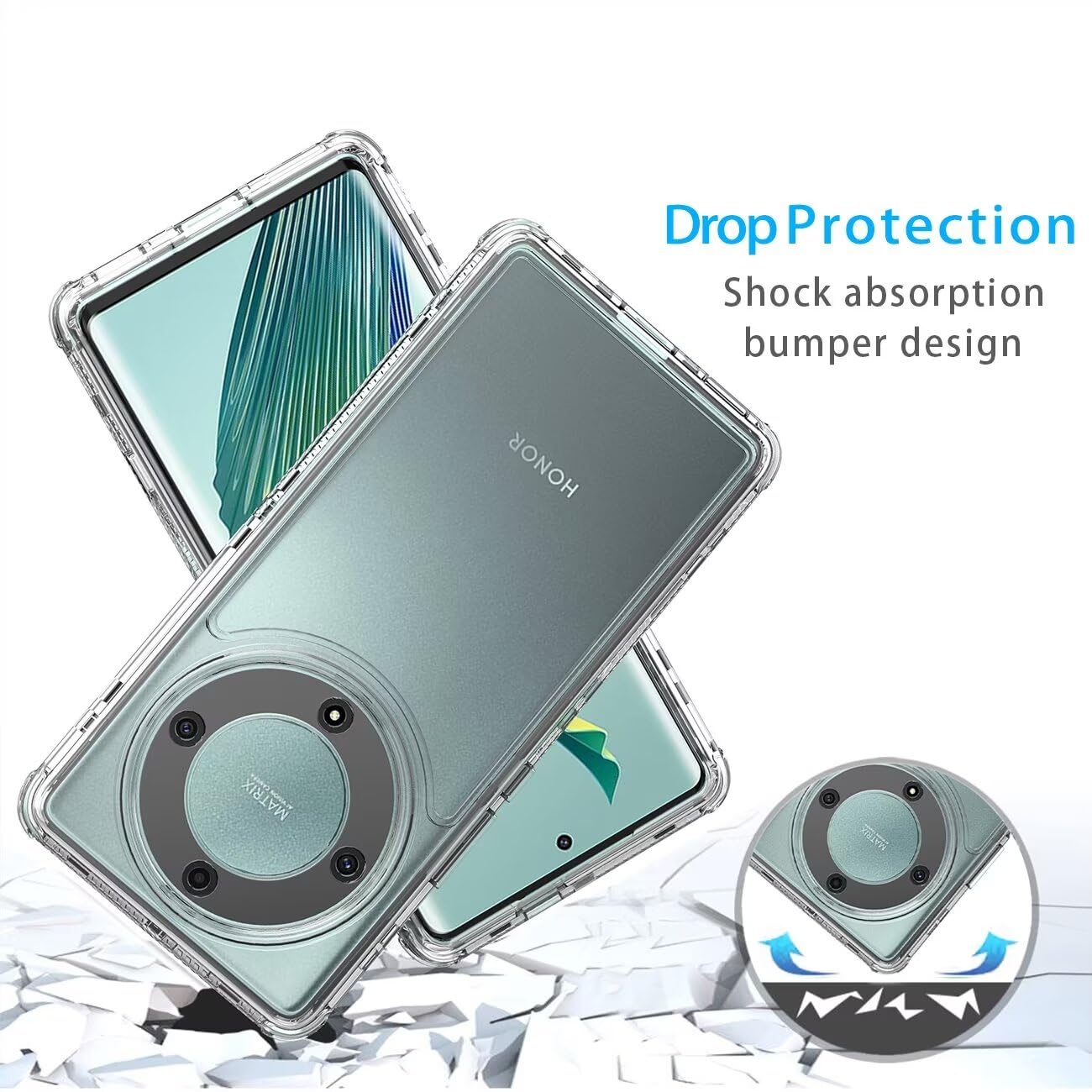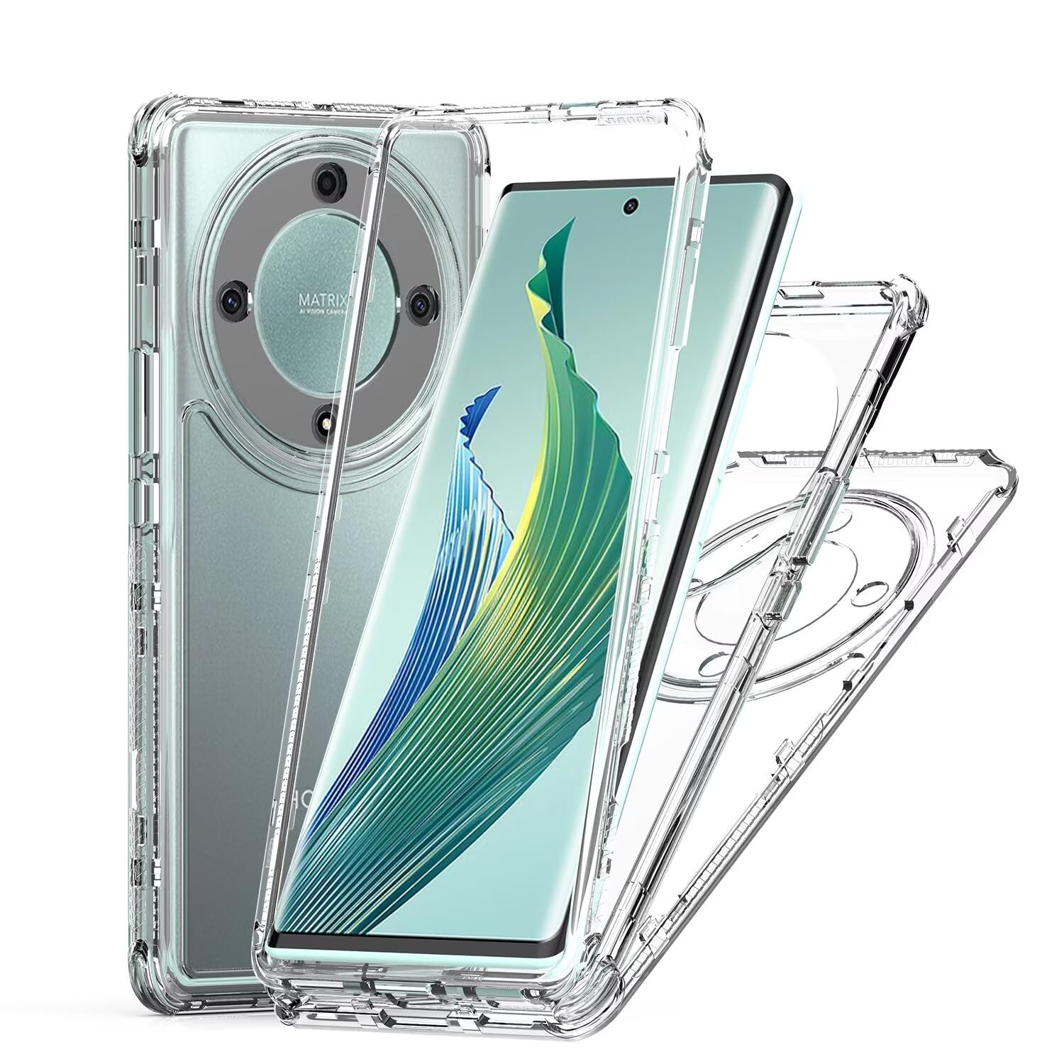 Compatibility: Compatible with Honor X9A 5G/Honor Magic5 Lite/Honor X40 5G 6.67" RMO-NX1. Please choose the right phone case before you buy it or you can ask me question in "Have a question". 【Materal】: 3 in 1 Armor construction, inner shell & Soft TPU outer cover shell, offer dual layer protecion. [NOTE: NO front cover/ NO 3rd part screen protector included] 【Heavy duty protection】: Heavy duty protection keeps your phone safe from drops and shocks. Impact resistant high quality TPU provide superior phone protection and control. 【360° Full-Body Rugged Protection】: Unique front and back integrated design provides all-around and robust protection for your device, safeguarding it from drops, scratches, and impacts, making it ideal for outdoor and adventurous activities. 【Clear Design】: The transparent materials show the natural beauty of your phone,clear back cover let you can insert photos for personalized look, it's a perfect gift for girls, women, friends, family. Compatible with: 1 x Cover Cases Honor X9A 5G/Honor Magic5 Lite/Honor X40 5G 1 x HD Tempered Glass Screen Protectors