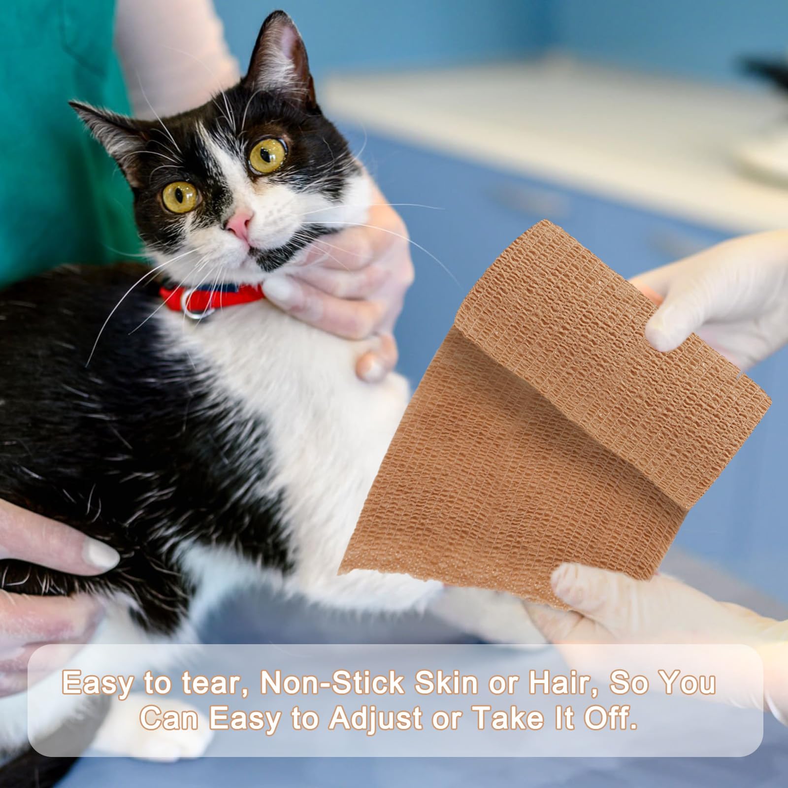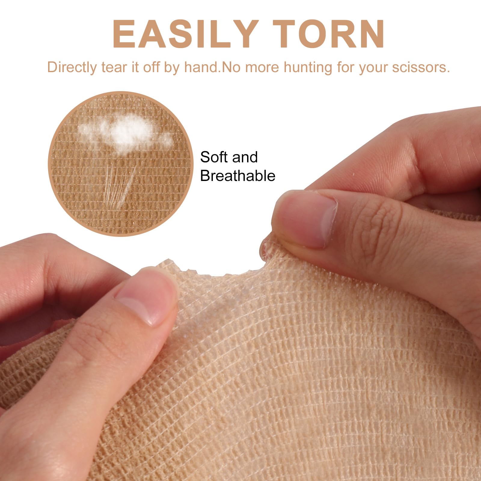 【No Residue & Effortless Application】Unlike ordinary tapes, this self-adhesive bandage sticks only to itself, not skin or hair. Easily tear b hand without scissors—perfect for quick fixes during sports, workouts, or pet emergencies. No pins or clips needed!