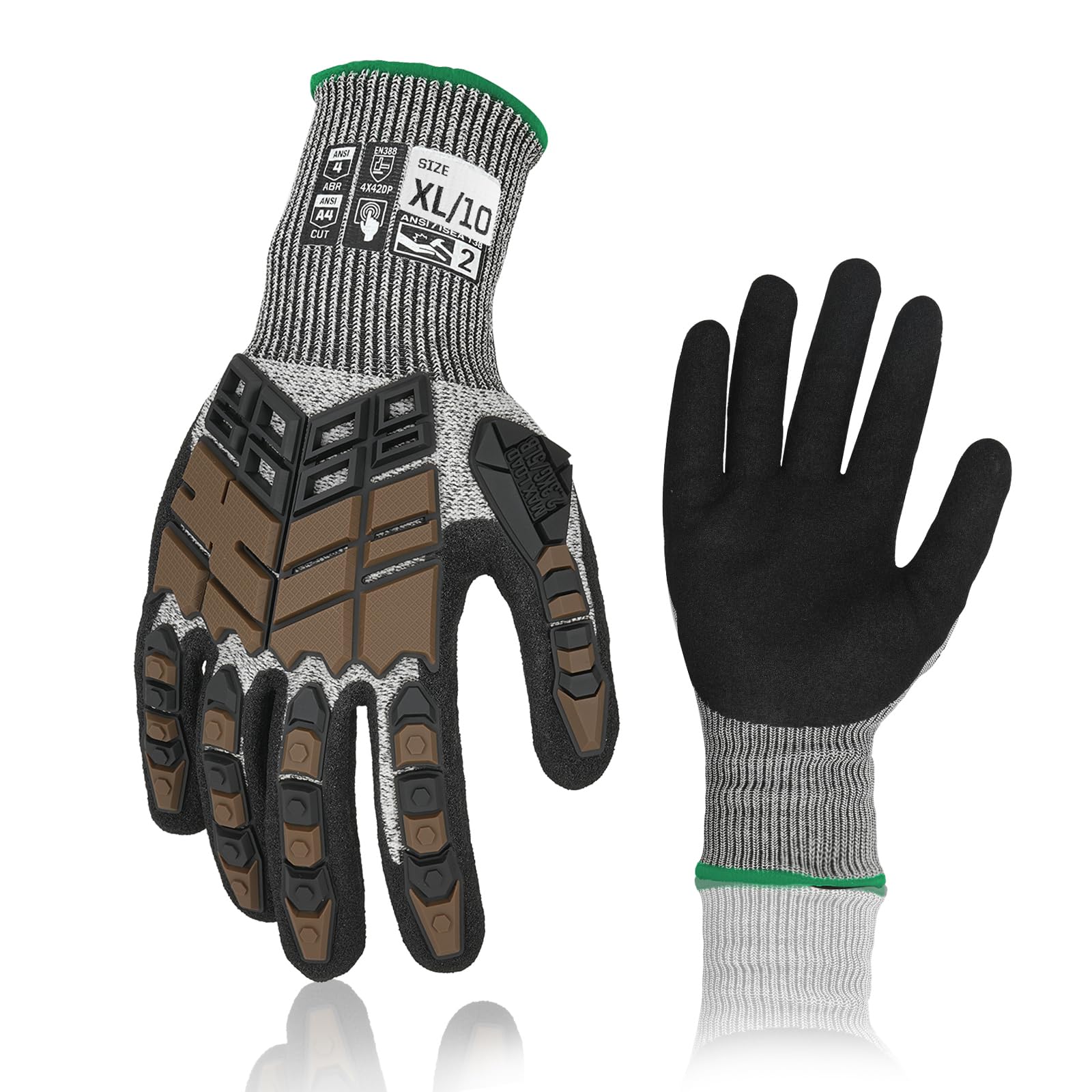 Impact Protection: These work gloves are made of super high cut resistance breathable HPPE, coverd with thermal plastic rubber (TPR) on the back and knuckle, reached ANSI level 4. It can effectively protect your hands from thorns and pointy rocks. Put on it, Never worry about dangers !