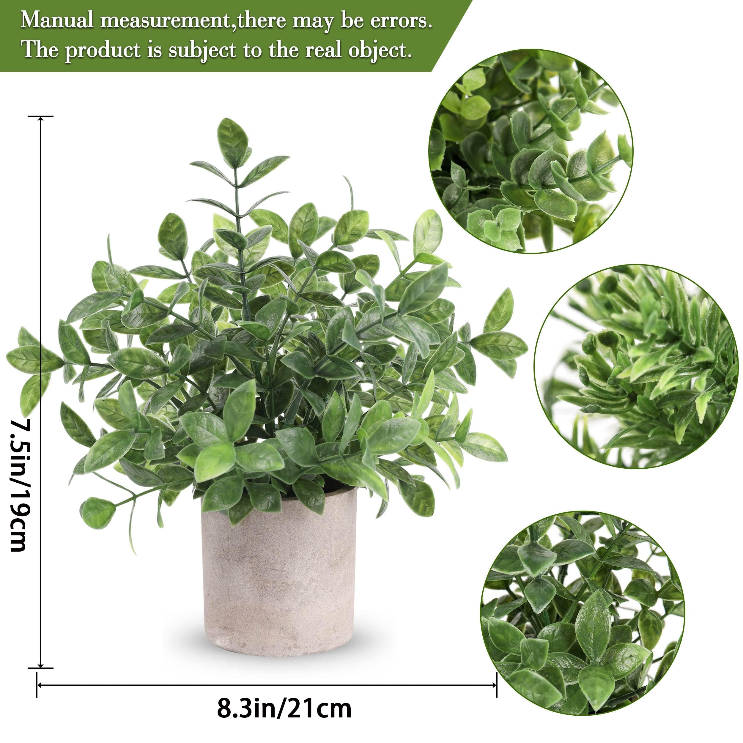 Delicate Design: The lifelike desk plants can bring green life and freshness to your living space.We adopt a unique design to imitate the frosty gray-green leaves of eucalyptus, and flock the surface of each potted plant.