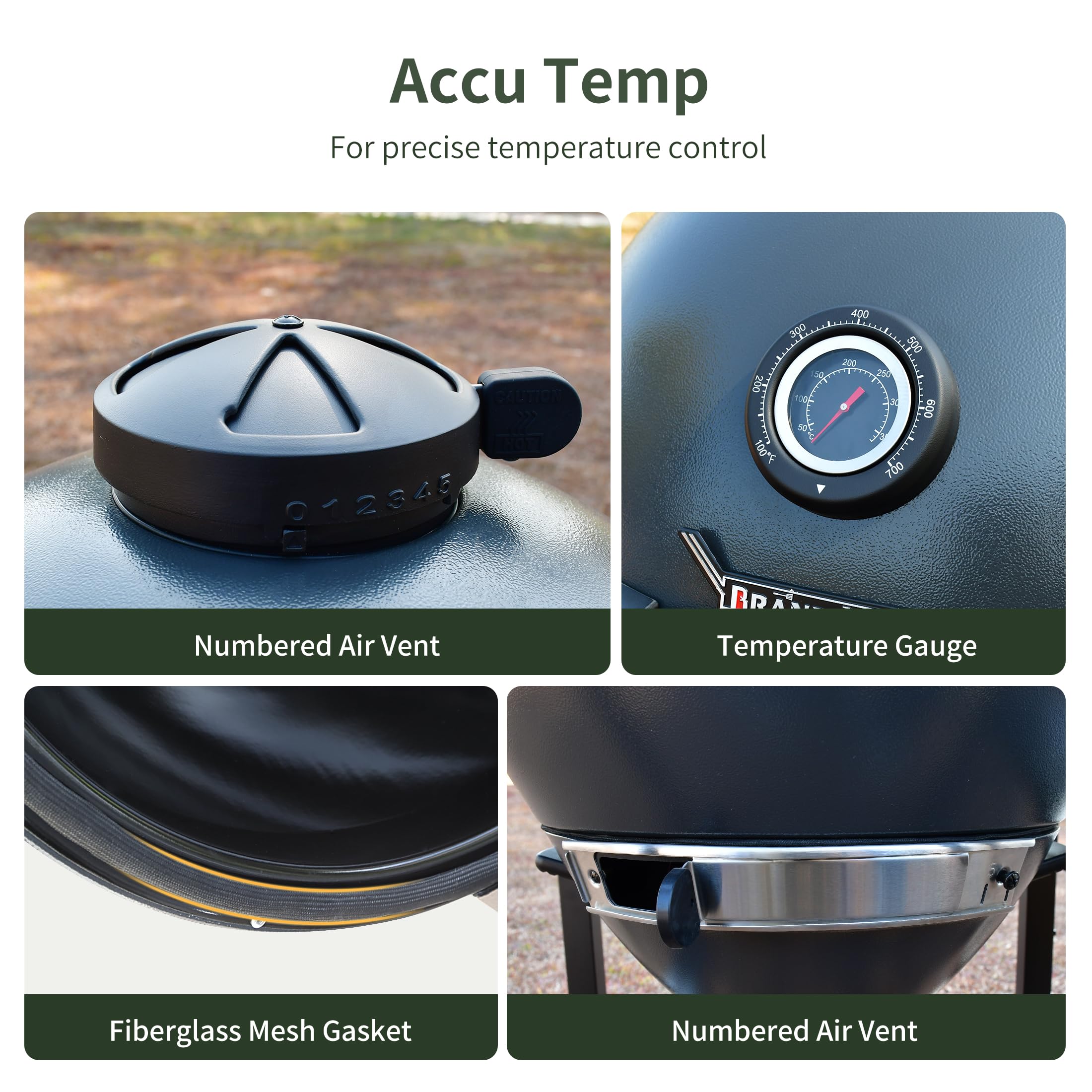ACCU TEMP CONTROL: Achieve perfect results with our five-position airflow system and hood-mounted thermometer, offering consistent temperature settings for all your grilling needs