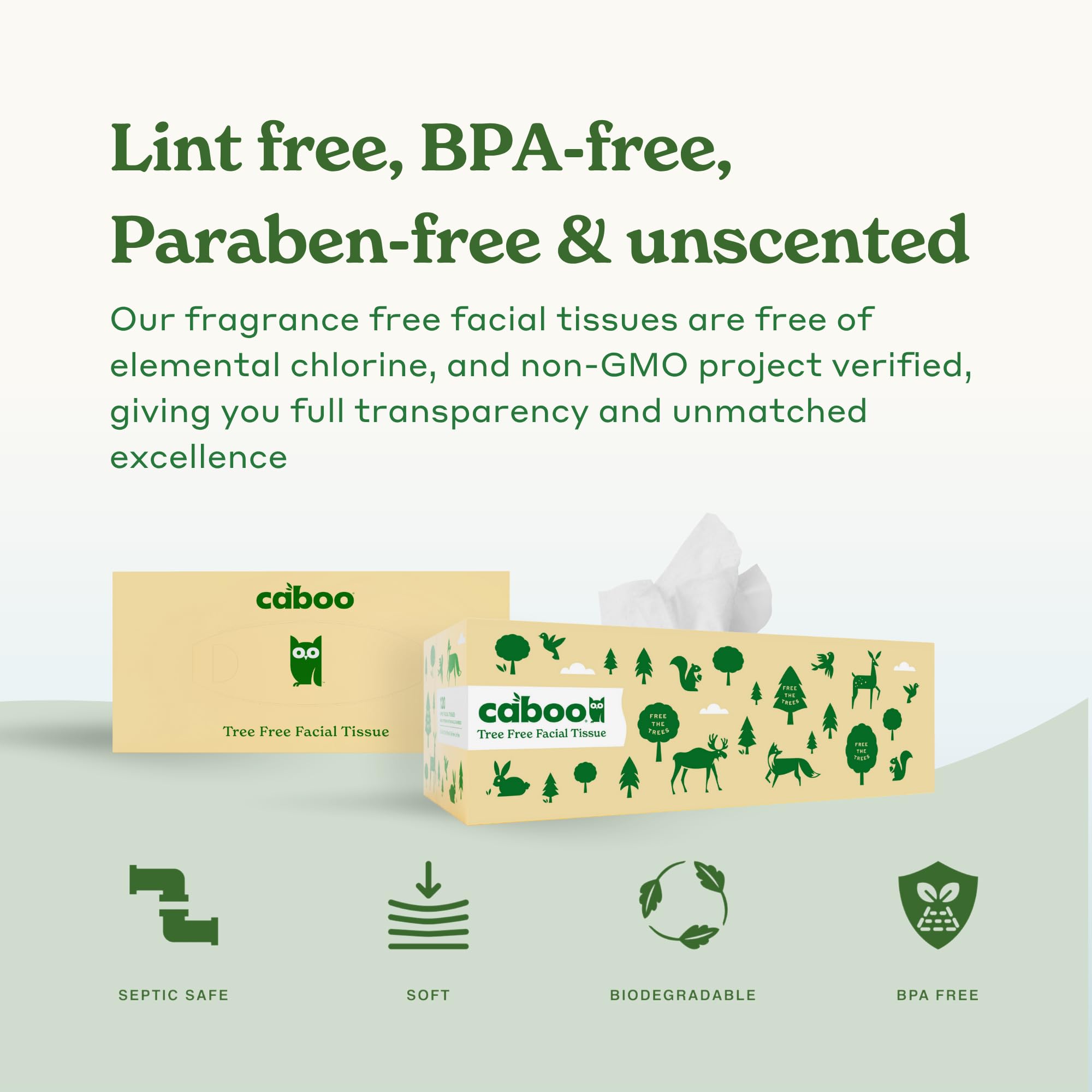 TREE FREE facial tissue wipes made from responsibly sourced, organically grown bamboo that regenerates itself within 2 years. 100% bamboo gives you a sustainable, eco friendly, green alternative to traditional tree based facial tissues