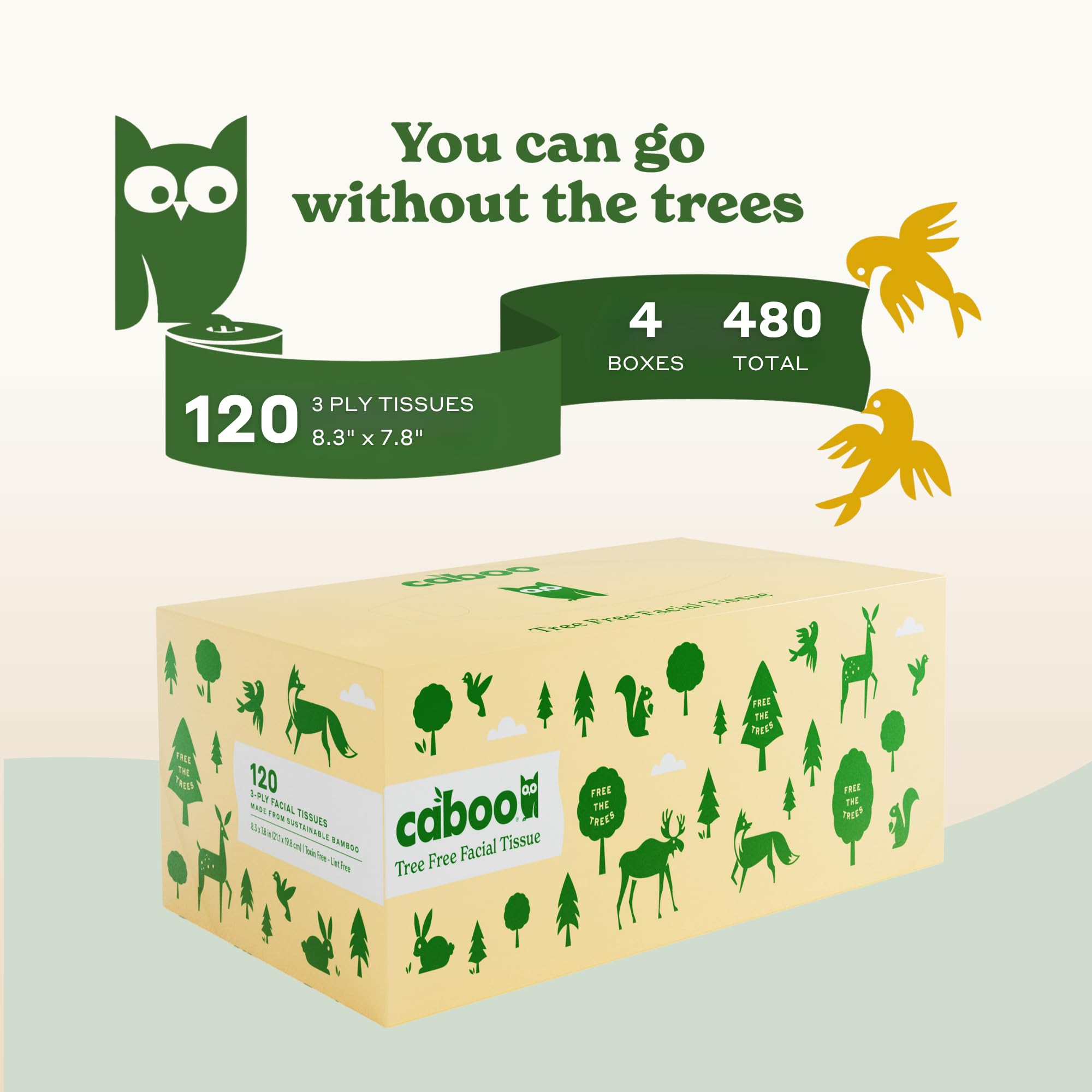 BULK PACK OF FOUR 3-Ply Tissue Flat Box - 120 Sheets Per Box, Total of 4 Boxes, 480. Caboo is accredited by the BRC Global Standards, FSC, ISO 14000, and is proudly panda friendly