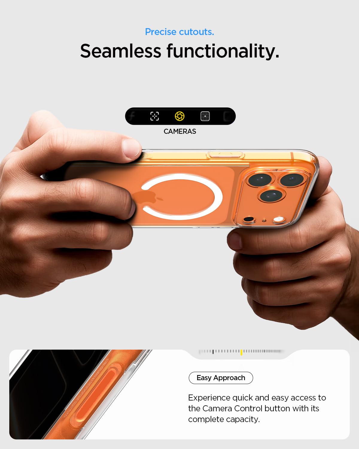 The camera control button is covered by a thin TPU layer, providing protection while maintaining functionality.
